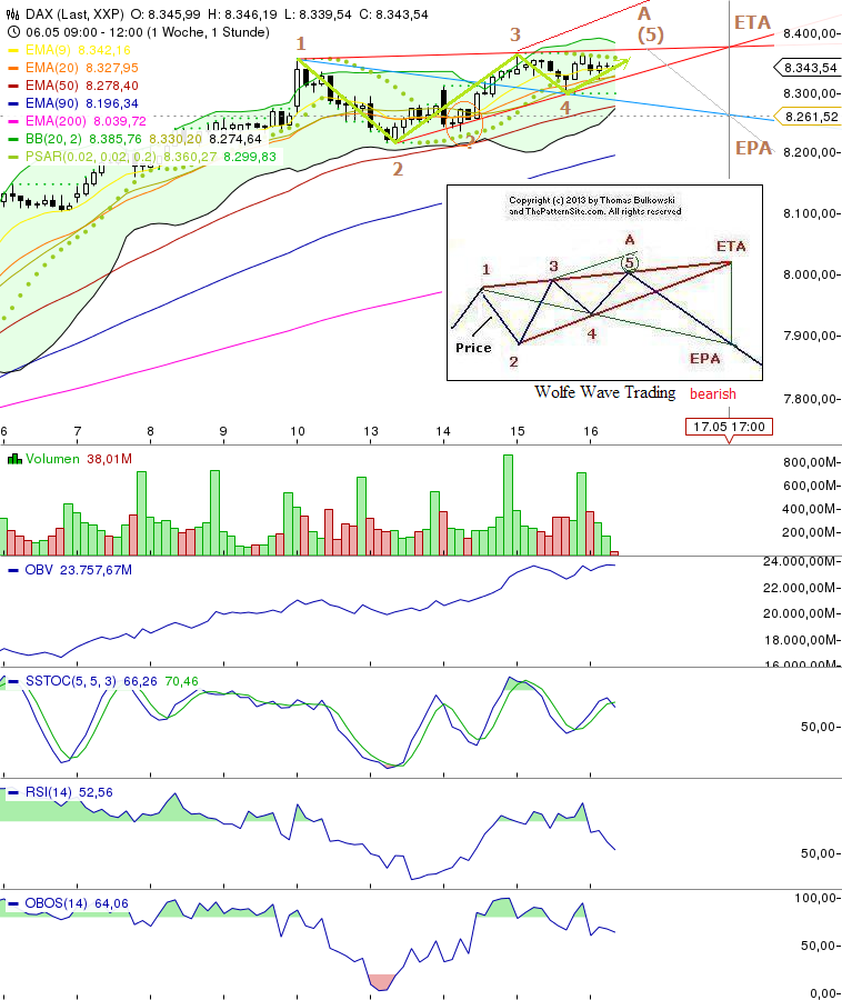 Hatte seit ein bis zwei Tagen ein "bearish wolfe trading" (BWT) - Th. Bulkowsky auf dem Radar..... Könnte sich bewahrheiten, - aber abwarten.