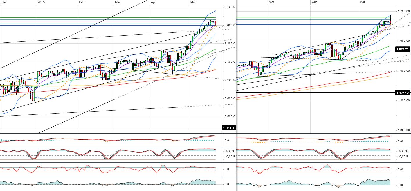 Hier der NDX und SPX Daily: