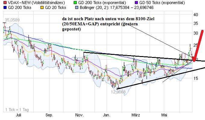 Ich denke, entscheidend wird heute für die Erholungsfortsetzung sein, ob die steigende EMA 9 verteidigt werden kann. Bei Bruch des steigenden mBB durch die Erholung vorbei sein.