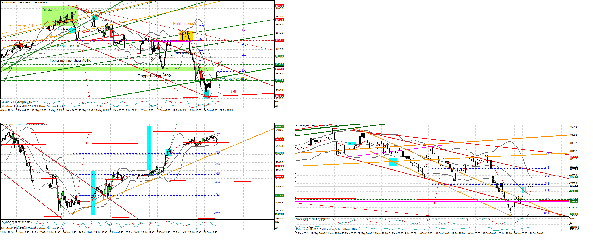 Rücksetzer zum 76iger und anschließend Erholung bis ans oBB 240iger haben auch hier gefunzt.