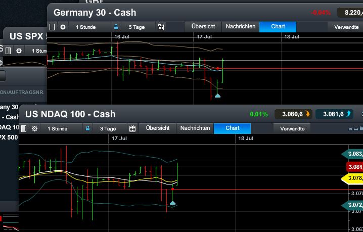 habe den Dax per gtc bei 8160 gelongt, Dax am 138er im 60er nach oben weggedreht, gleichzeitig hat die ~15420 die bereits seit 11.07 auf std basis mehrfach gehalten hat die letzten tage dieses erneut getan. Zeugt mmn von realtiver Stärke der indices, bullen bleiben noch am drücker. würde mich nicht wundern wenn die mit bens aussagen im rücken im dow nen neues ath machen, wie schon vorgestern in den raum gestellt und den dax zumindest bis ~8300 (altes hoch vom 19.06) mitziehen, was dann passiert muss man sehen, noch haben die amis scheinbar keine lust auf konso, aber wer weiss. Die ~8260er hoch von vorgestern muss ja auch erstmal übersürungen werden.