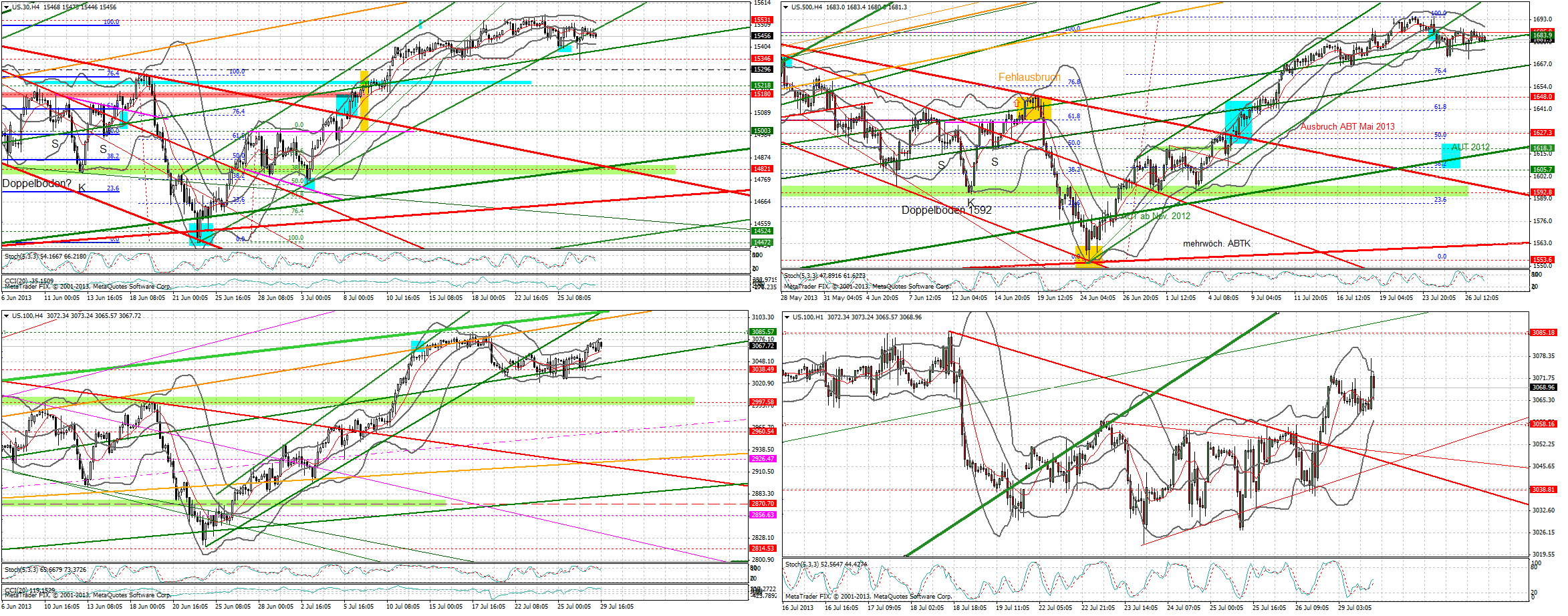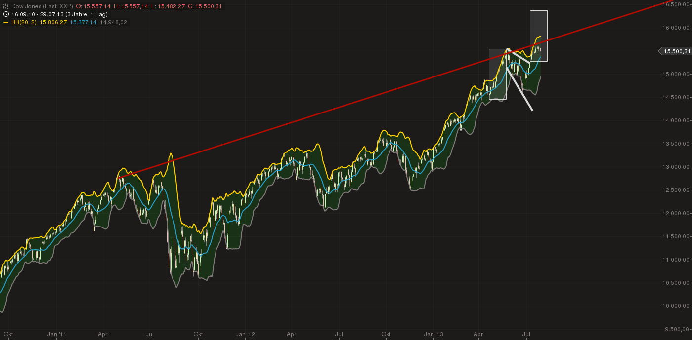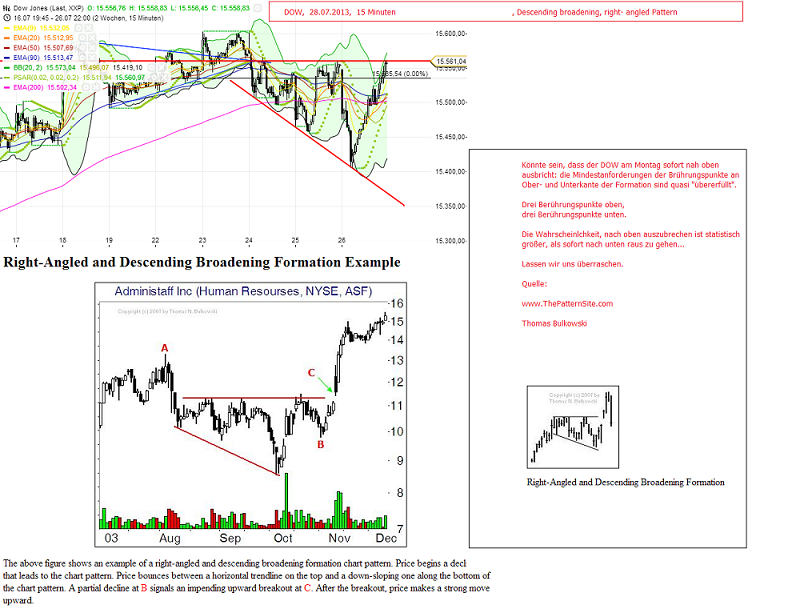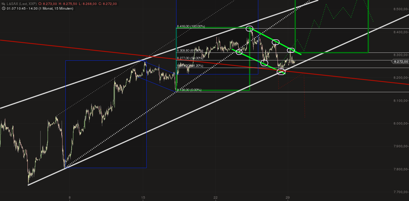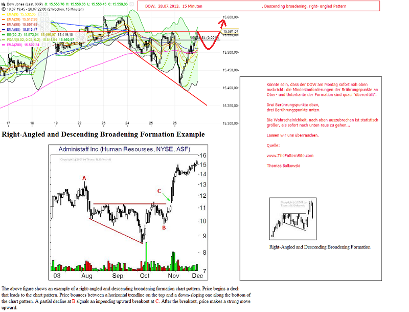 Allerdings ist hier ebenfalls (genauso wie im DOW) die 0-2- Linie vom Chart schon "durch". Streng genommen wäre hiermit die Welle "3" schon beendet....Gibt allerdings ein paar EW- Vögel, die die 0- 2- Linie vollkommen ausser acht lassen: da könnte erst recht die MoB der drei noch erreicht werden?? Ibra und MKZ könnten hier vielleicht detailliertere Auskunft geben. Allerdings halten sich gerade MKZ und auch Ibra SEHR präzise an die Regeln der 0-2 Linie...