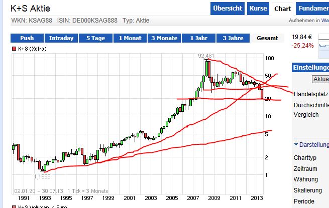 Ich habe keine K+S im Depot !!! Trotzdem kann m.M.n ein Austausch über einen evtl. Ein /Ausstieg einer Aktie interessant sein. (oder werden, wenn man sie selbst nicht auf der Watchlist hatte ) Von K+S zu Solarworld oder Fannie Mae zu schwenken, find ich allerdings auch übertrieben von dir .