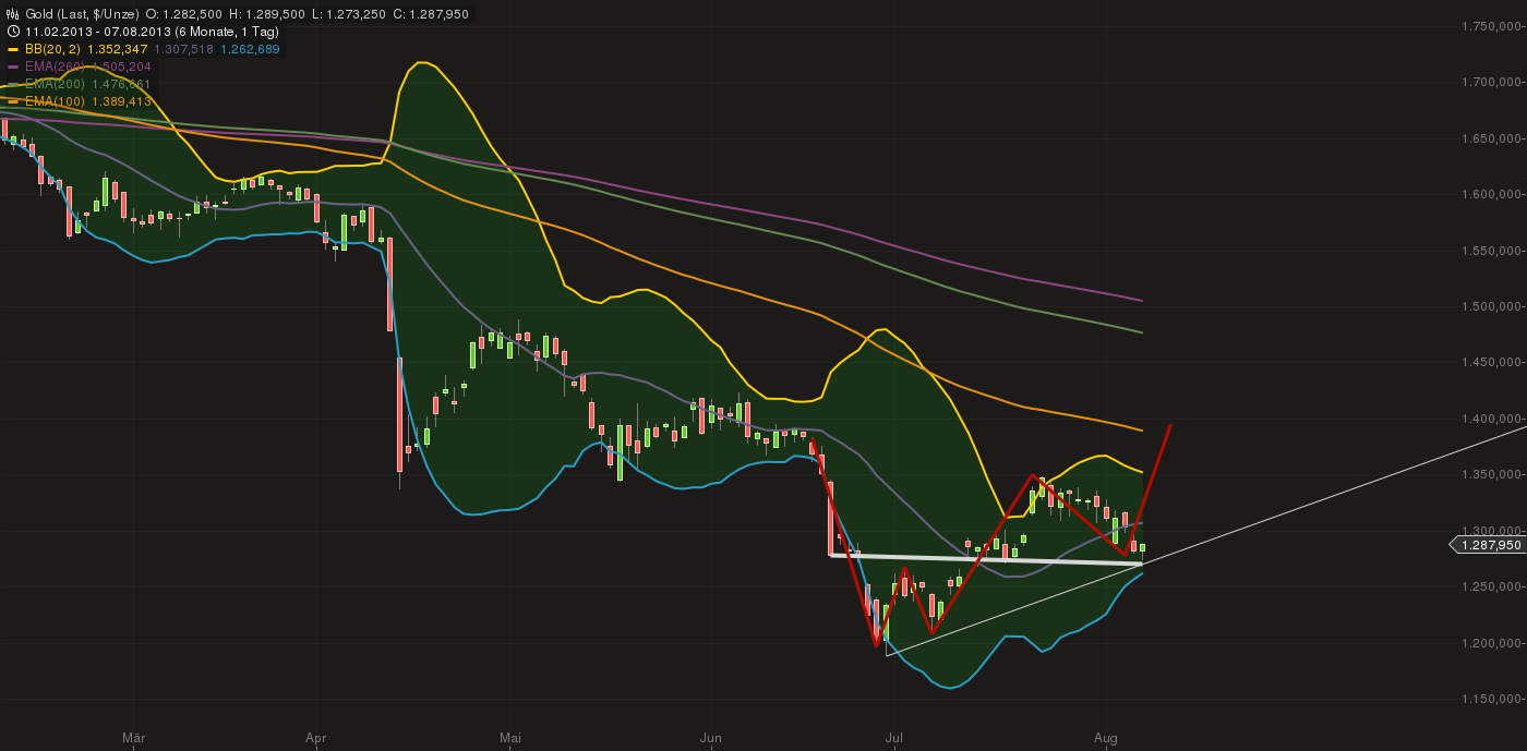 Die gute Nachricht: Gold hat bei im die 1270 starke Unterstützung, unzwar doppelte Unterstützung...und ist dort abgeprallt...