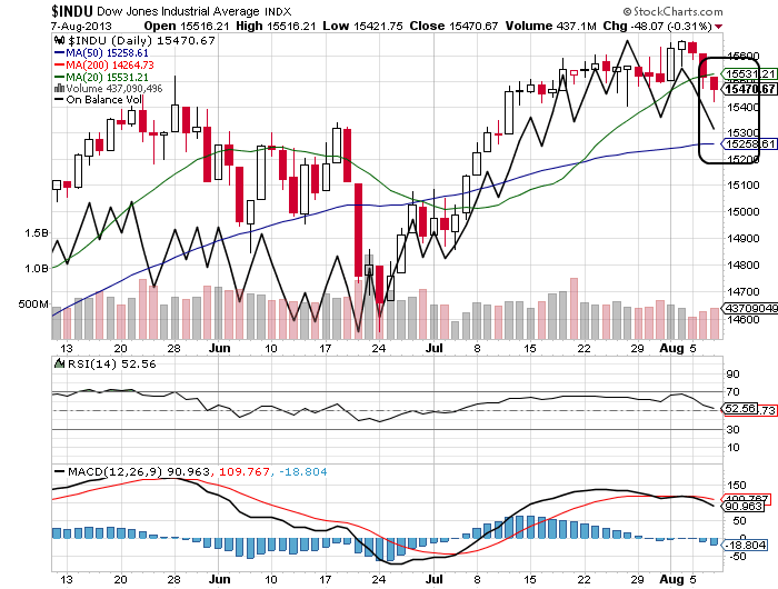 In diesem Bild ist der Dow unter die MA20 gerutscht, die dürfte als Widerstand fungieren...