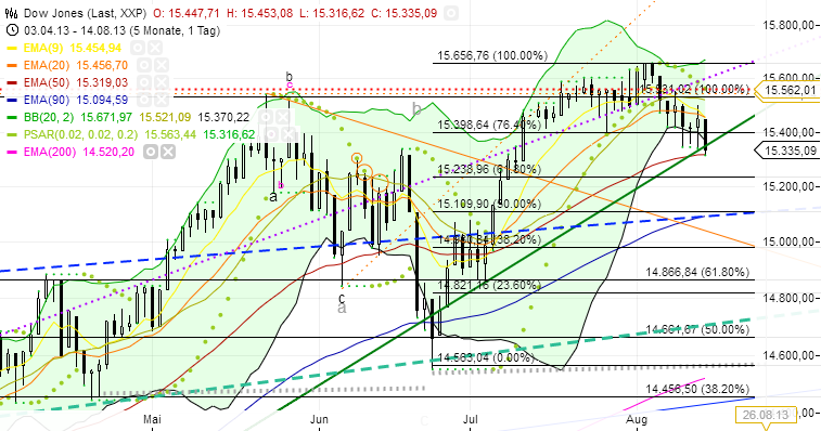 Kursschluss DOW / daily knapp oberhalb EMA50....wenn die nicht hält, jetzt inzwischen leicht drunter...und die 15.300 / besonders die 15.238 nicht halten, - gibt es bald erfreute Bären....