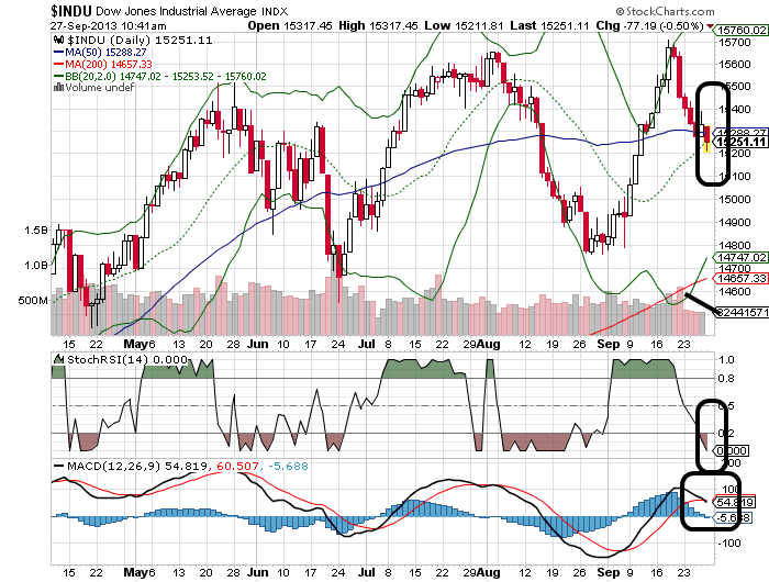 Volumen fallend, Stoch RSI in den Verkaufsbereich gefallen, MACD durchsticht die Signallinie...