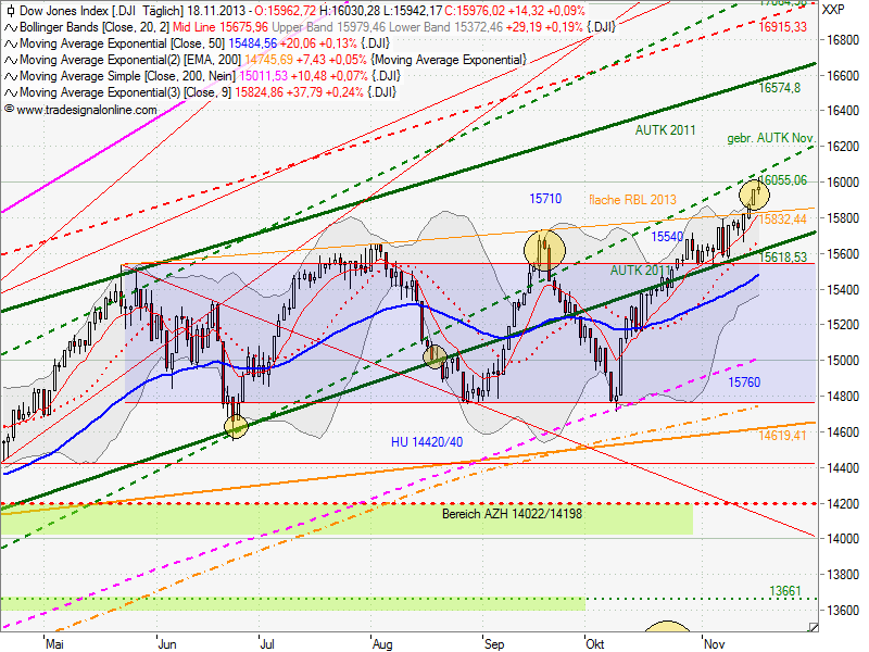Das ganze passt wunderbar ins politische Bild, dass derzeit gemalt wird - Harmonie allerorts - die Krisenstaaten verabschieden sich aus dem Rettungsfonds, Banken sind stark genung, dass sie sogar STrafen zahlen können. Alles paletti also. Warum aber kann ich das so nicht glauben? Na ja... nach längerer Tradingpause ein paar Trades machen, das macht auch Spaß-