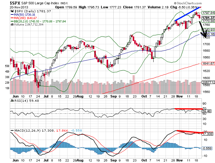 Die bärischen Divergenzen und das Eintauchen des MACD Signals unter die Signallinie spricht für eine Konsolidierung auf mindestens der MA50 bei 1730....vielleicht sgar 1700....