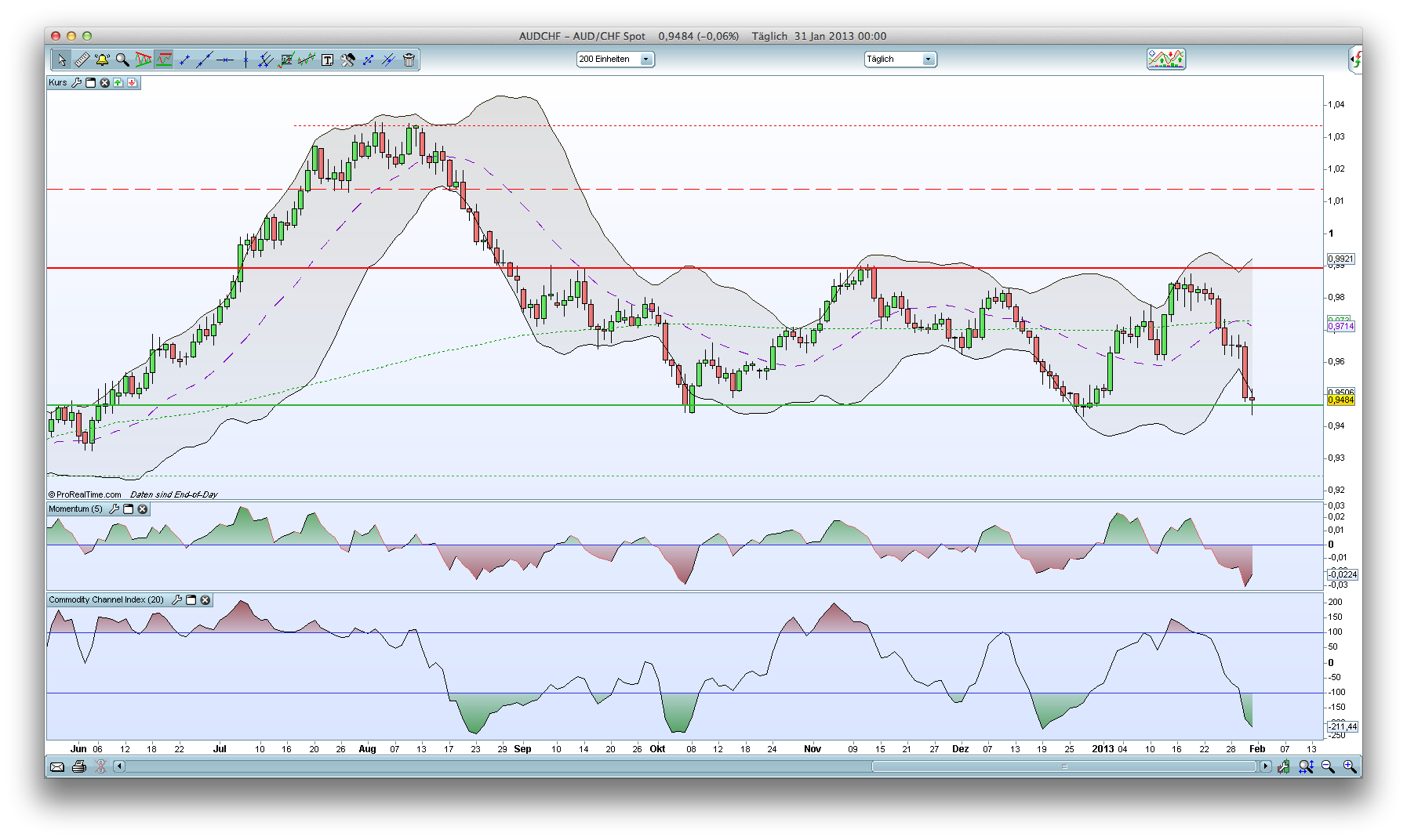 nicht wo es lang gehen soll. Die Devisen zicken an allen Fronten. Letztens hatte ich noch AUD/USD Short, bin am untern Bollinger raus. Seitdem läuft die Krücke seitwärts.
