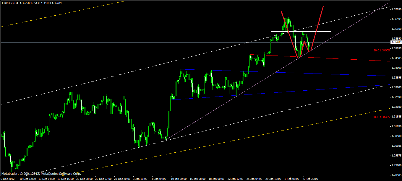 Gestern lief der Euro wie auf Schienen. ZT bei 1,346 und dann etappenweise Anstieg bis zum HW 1,359. Ausgehend hiervon bildet der Euro sein 2.Standbein aus.