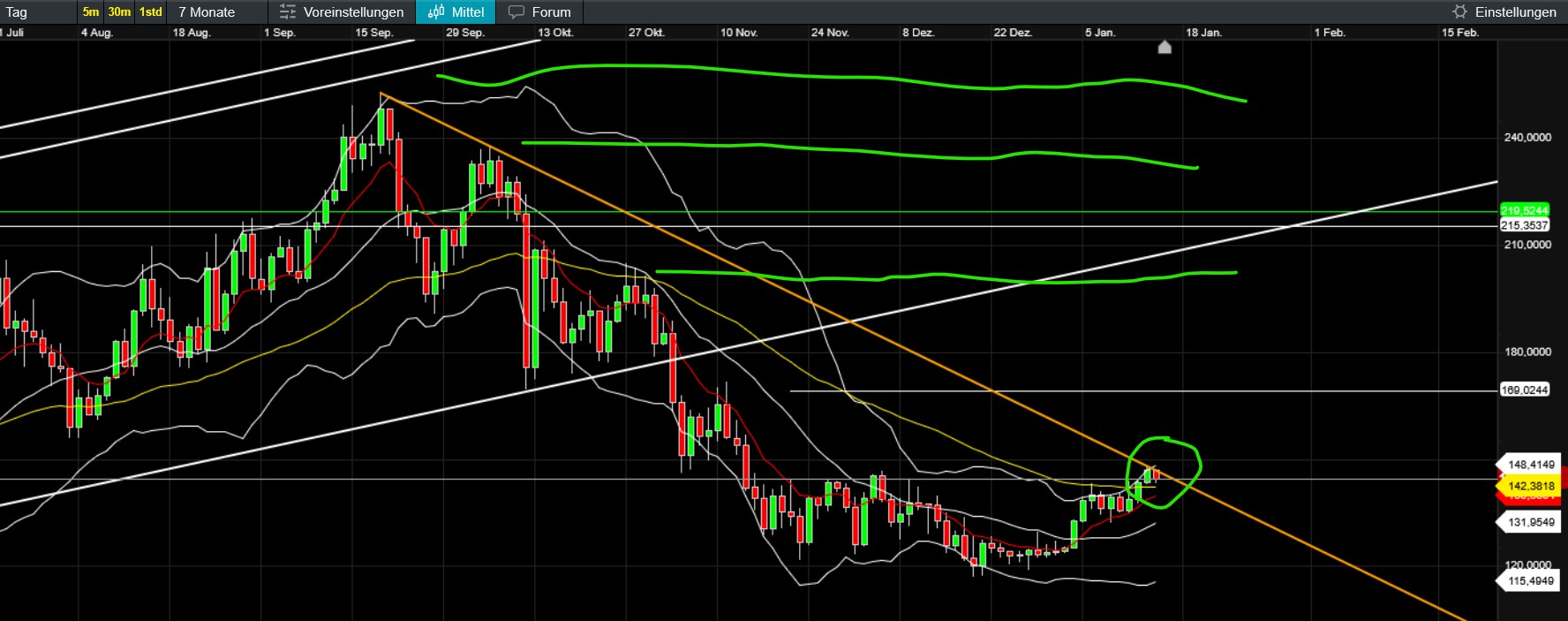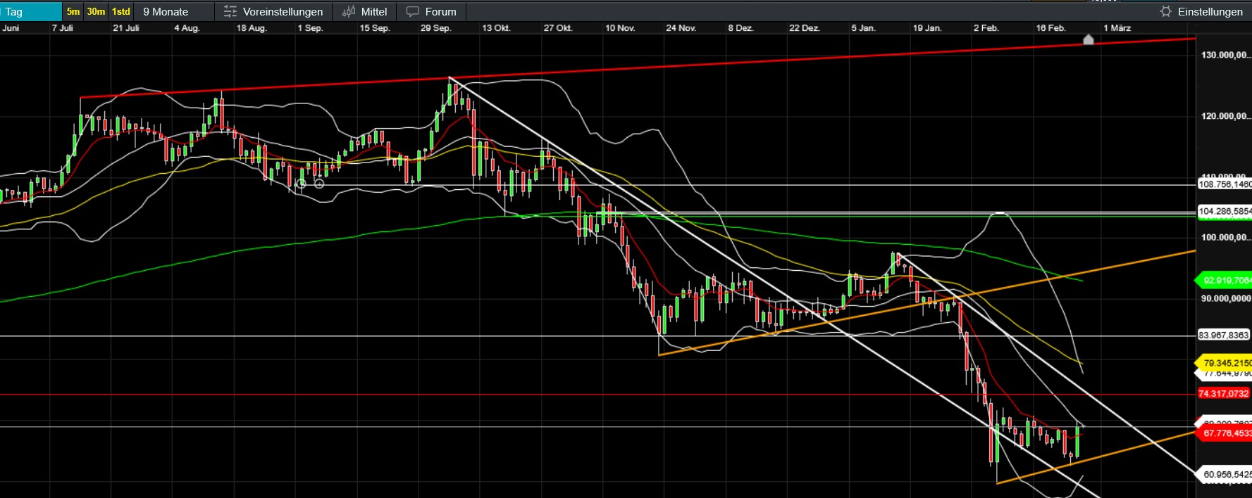 Meine persönliche Herangehensweise ist dabei die technische Analyse ohne Anspruch auf Vollständigkeit - es wäre schön wenn Dritte Ihre eigenen Kenntnisse/Vorlieben u.ä, mit Bezug auf Börse einfliessen lassen würden.