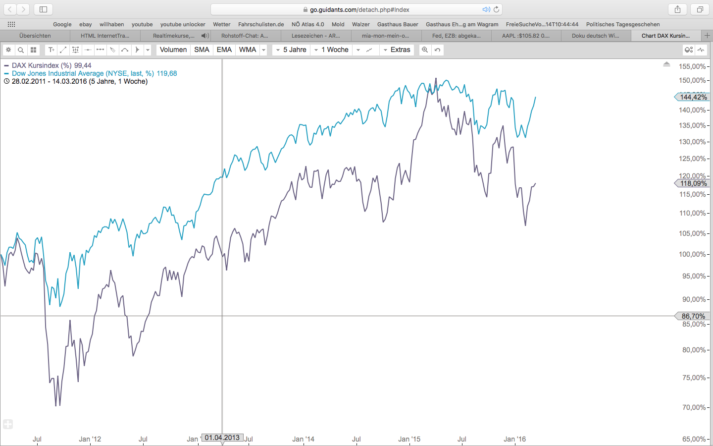 Wo soll das enden? IM 10 Jahres-Vergleich ist der Dax dann wieder etwas besser. Im 1 Monats-Vergleich ist der Dow auch nur minimal besser, dafür aber im 6 Monats-Vergleich aus oben angesprochenen Gründen deutlich besser.