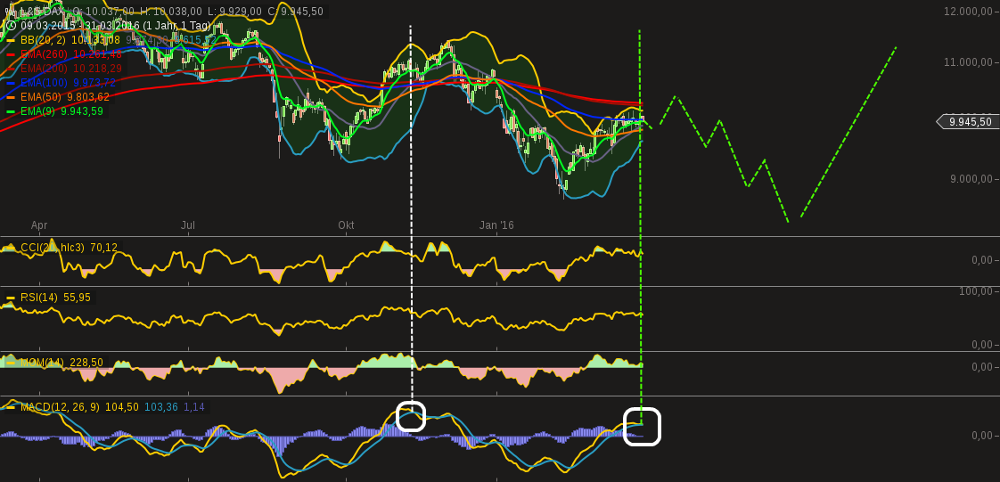 Der Durchbruch der Signallinie bedeutet für mich, dass der erstmal etwas korrigiert...bis EMA50 bei 9800 hat er Platz...womöglich noch uBB bei 9600...oder etwas überschiessen...