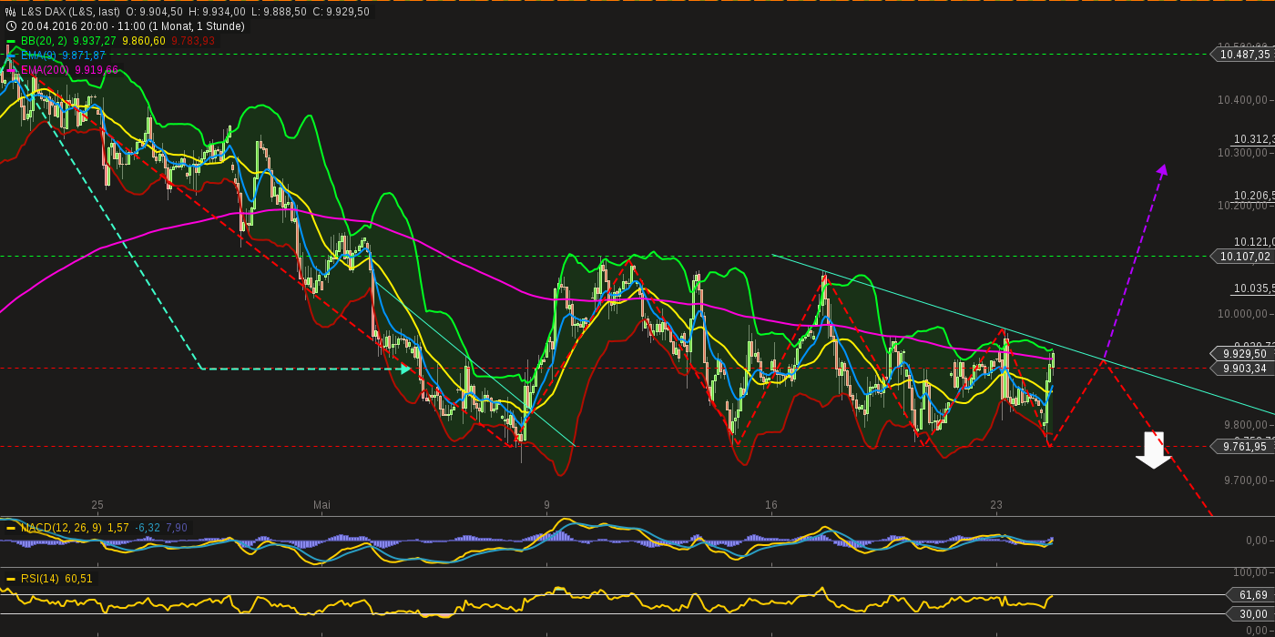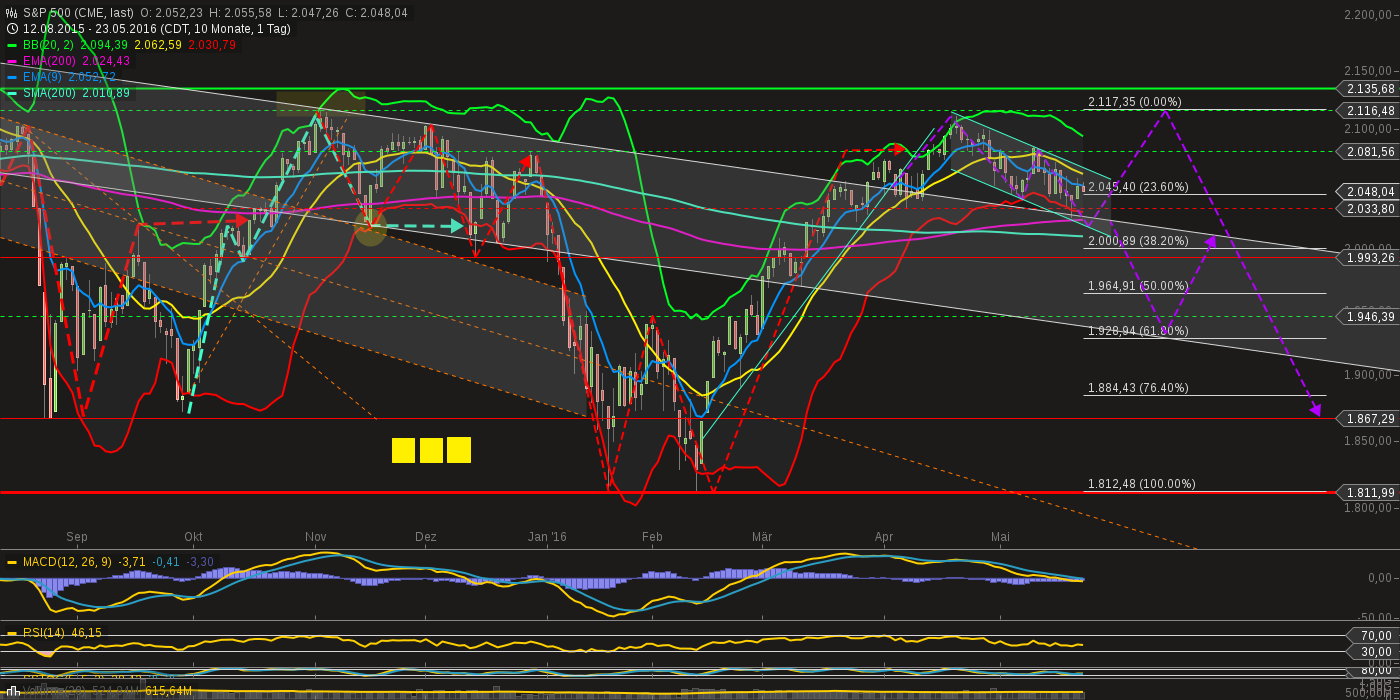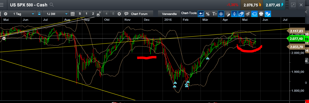 Fazit: die gemischen Vorzeichen bleiben. Erwartet wird ein Ausbruch nach oben in den Indizes. Ein schnelles umschalten ist nötig, sollte es in die andere Richtung gehen. Teilgewinne sind ob des seitwärtsphasencharakters schneller zu realisieren.