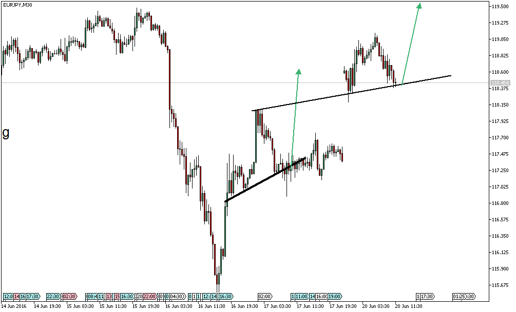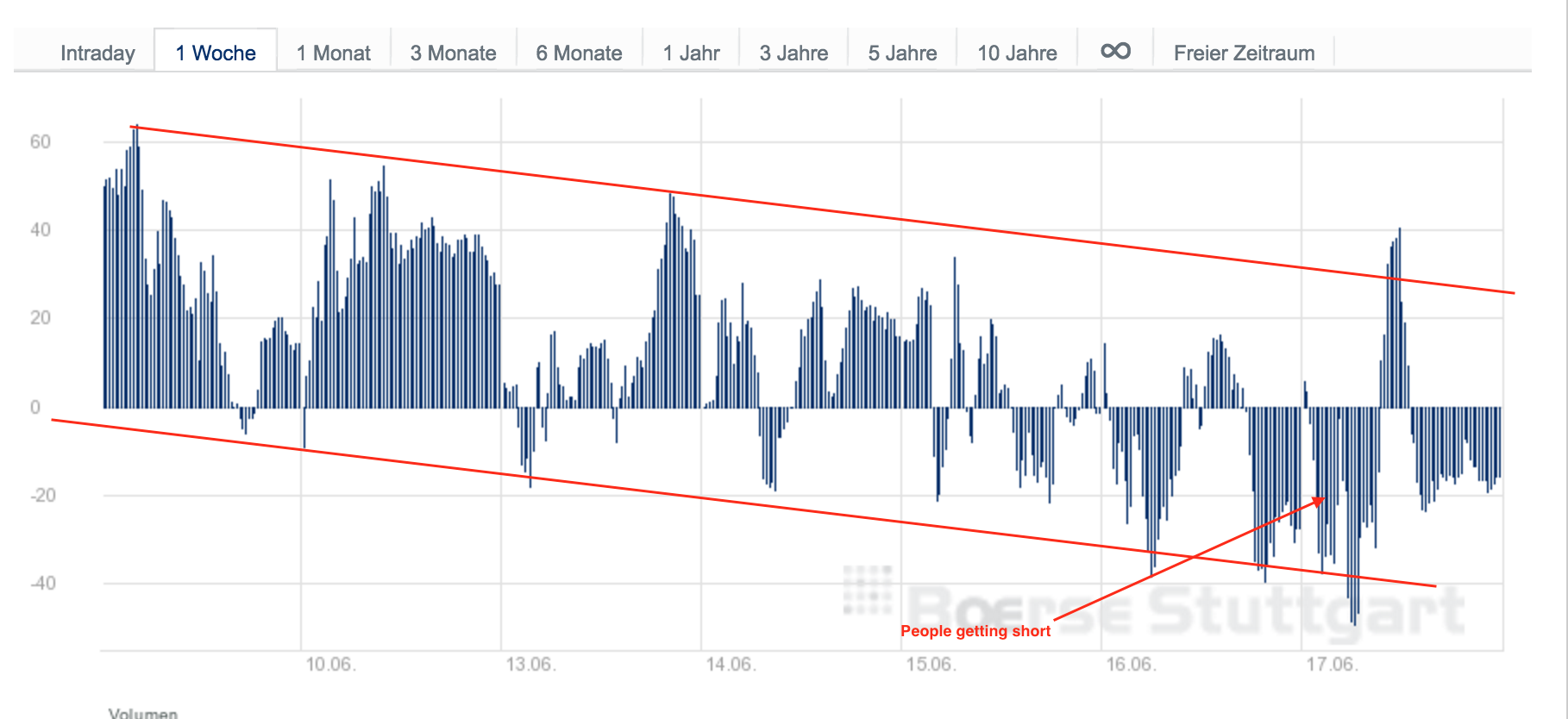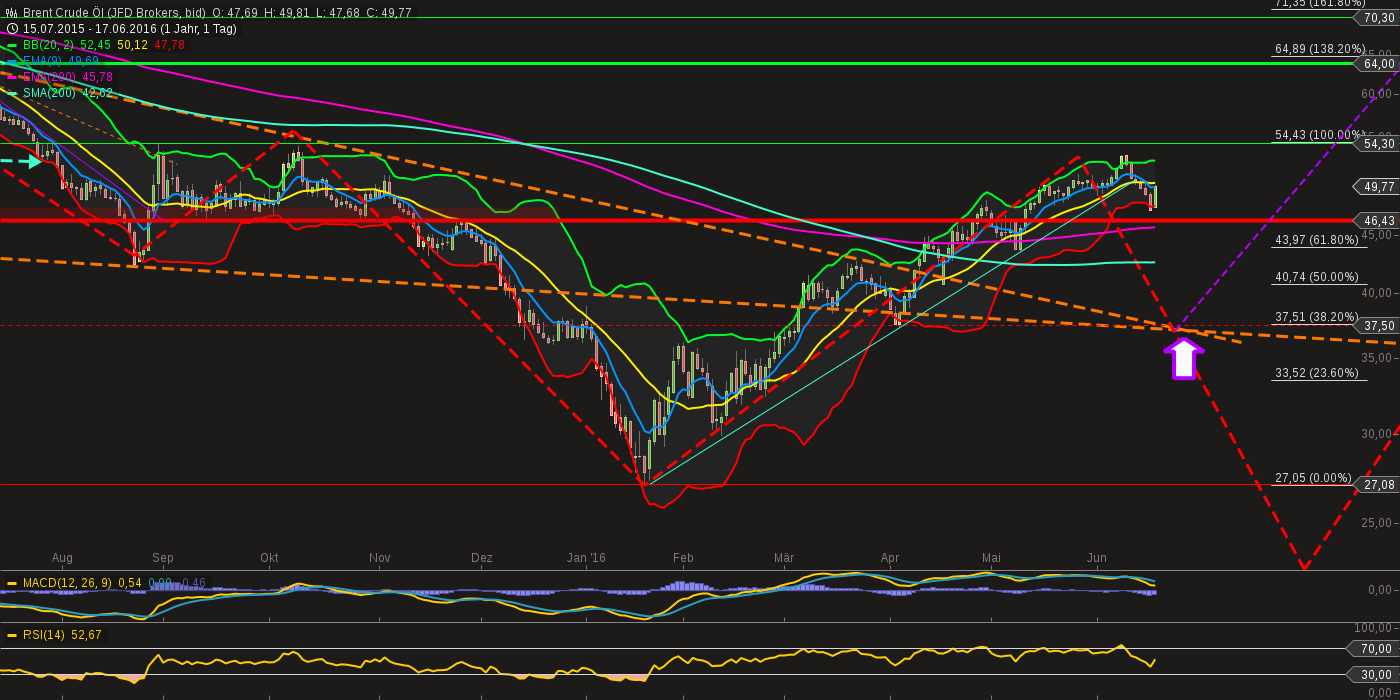 Der seit Februar gültige Abwärtstrend wurde gebrochen. Mit dem Rücklauf an die Trendlinie von unten, hätte man nun eine schöne Einstiegschance auf der Short-Seite.