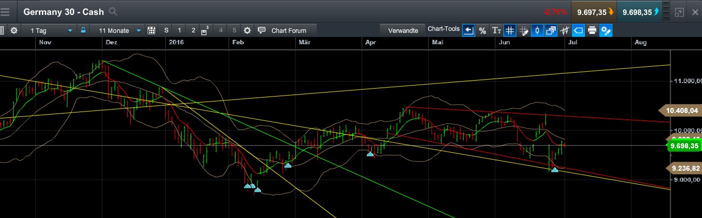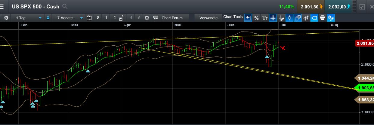 Bin mal gespannt.....Dow noch bisschen nach oben und dann kommt die Entscheidung: Auf nimmer wiedersehen nach oben...oder tief, tief herunter...