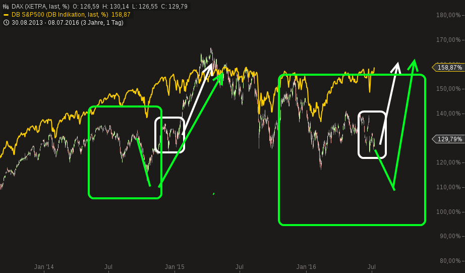 2015 hatten wir ja auch so eine Diskrepanz zwischen Dax und SPX....und Dax hat binnen 3 Monaten eine Fullminante Aufholjagd gemacht, während die US Indizes seitwärtsgelaufen sind.