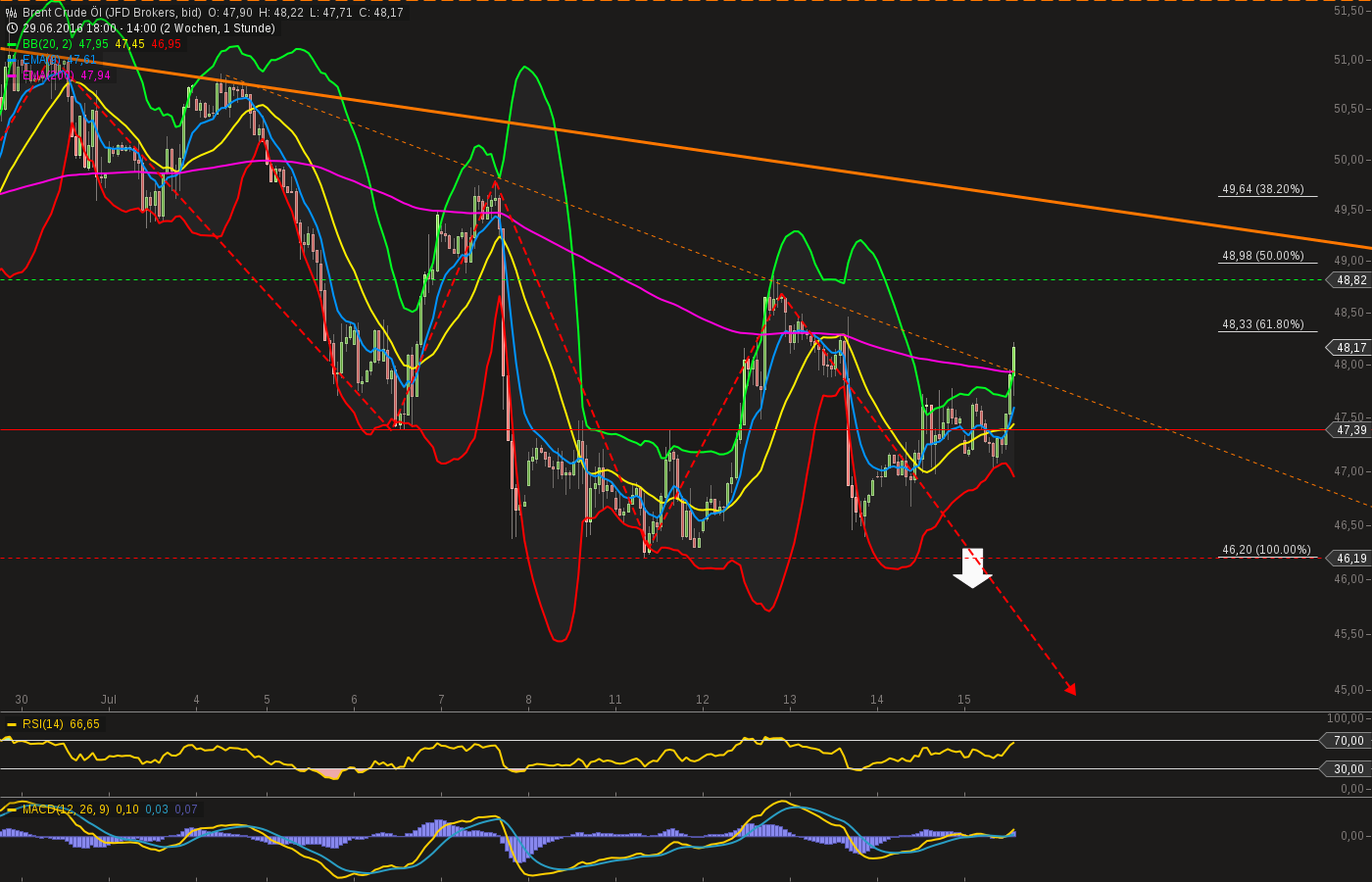 Dass der RSI noch kein Verkaufssignal generiert hat, spricht dafür, dass da noch ein eventuelles Hoch fehlt. Für Short noch zu früh...