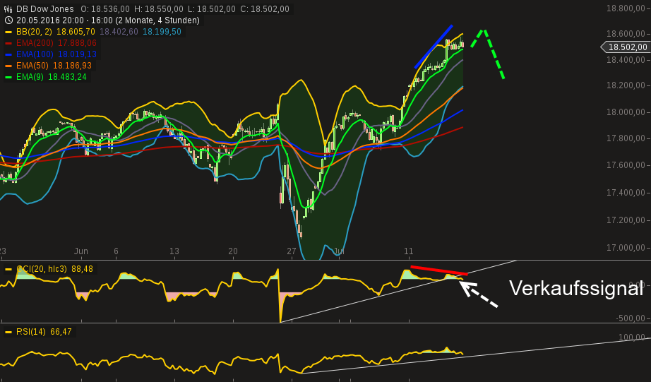 Neben bärischer Divergenz ist nun auch ein Verkaufssignal beim CCi generiert.