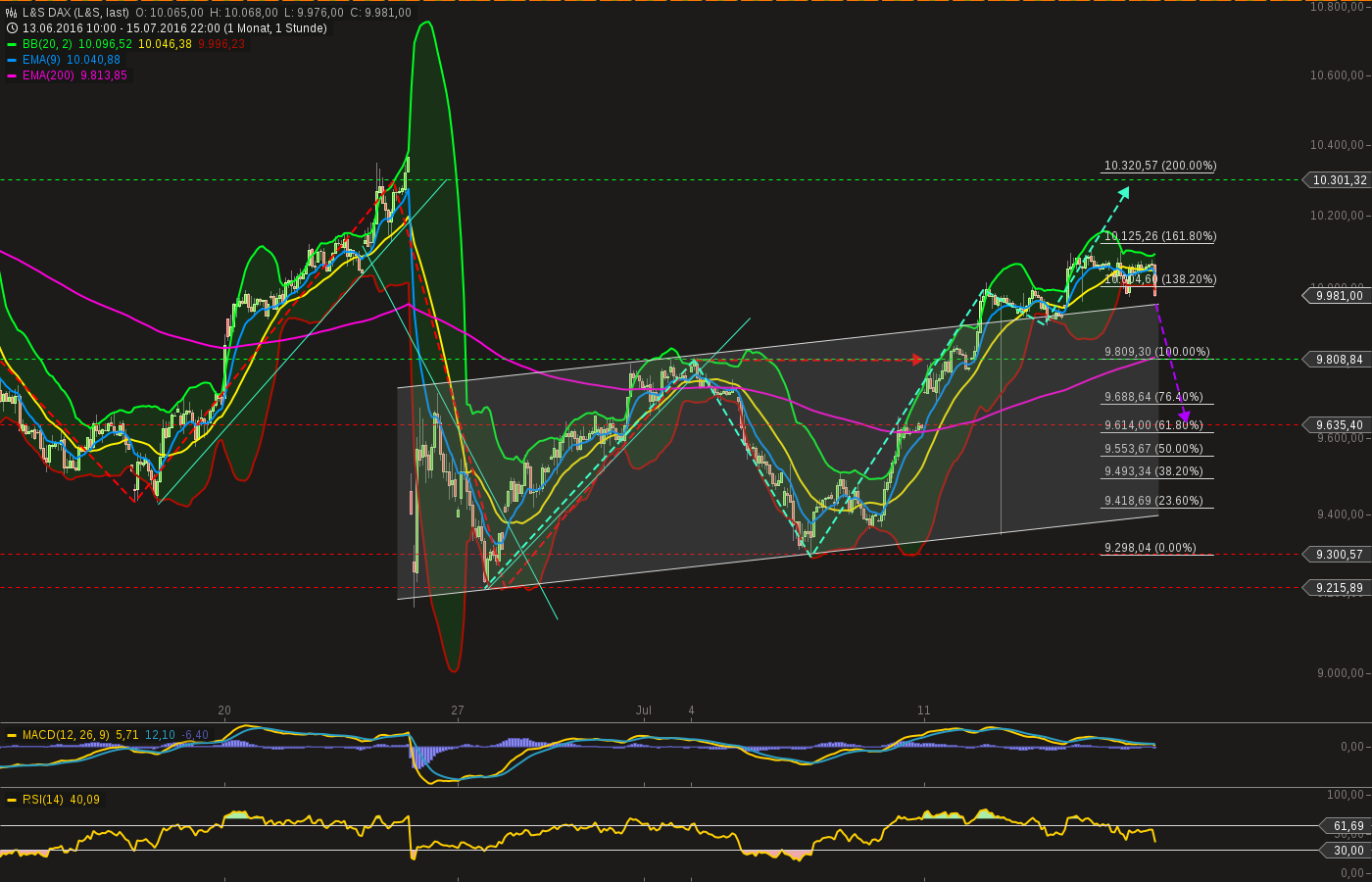 Jedoch bleibt der RSI das Verkaufssignal schuldig...aber es dauert nicht lange, bis das auch dort auftaucht...Geschieht dies, gibt es eine Korrektur...EMA50 bei 18186 wäre erstes Ziel...und dann muss man schaun, ob es dich nicht gegen EMA200 geht...