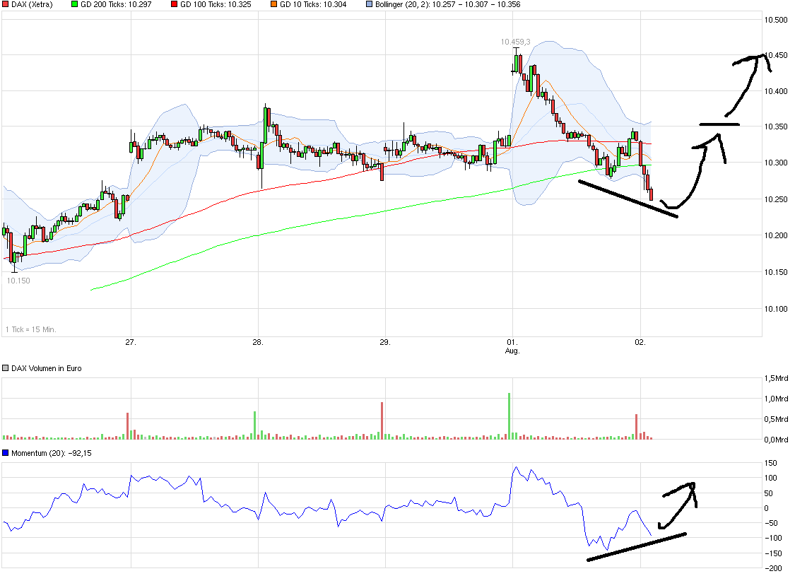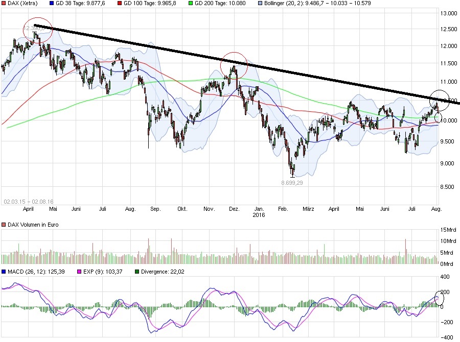 Dass der DAX am seit April 2015 bestehenden Abwärtstrend so deutlich abgeprallt ist, ist erstmal bärisch. Kann natürlich sein, dass er sich nochmal berappelt.