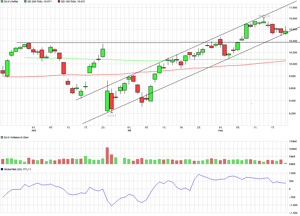 Kurz zu mir. Bin relativ neu an der Börse (ca. 3 Jahre) und bin eher mittelfristig orientiert. Benutze die Charttechnik in begrenzten Maßen und nehme es auch nicht immer ganz genau. Richte mich mehr an den mittelfristigen Eckpunkten im Chart und etwas Intuition. Also so ähnlich wie Dukac und bitte dementsprechend bei der Kritik berücksichtigen, wenn im Chart mal paar Punkte fehlen.