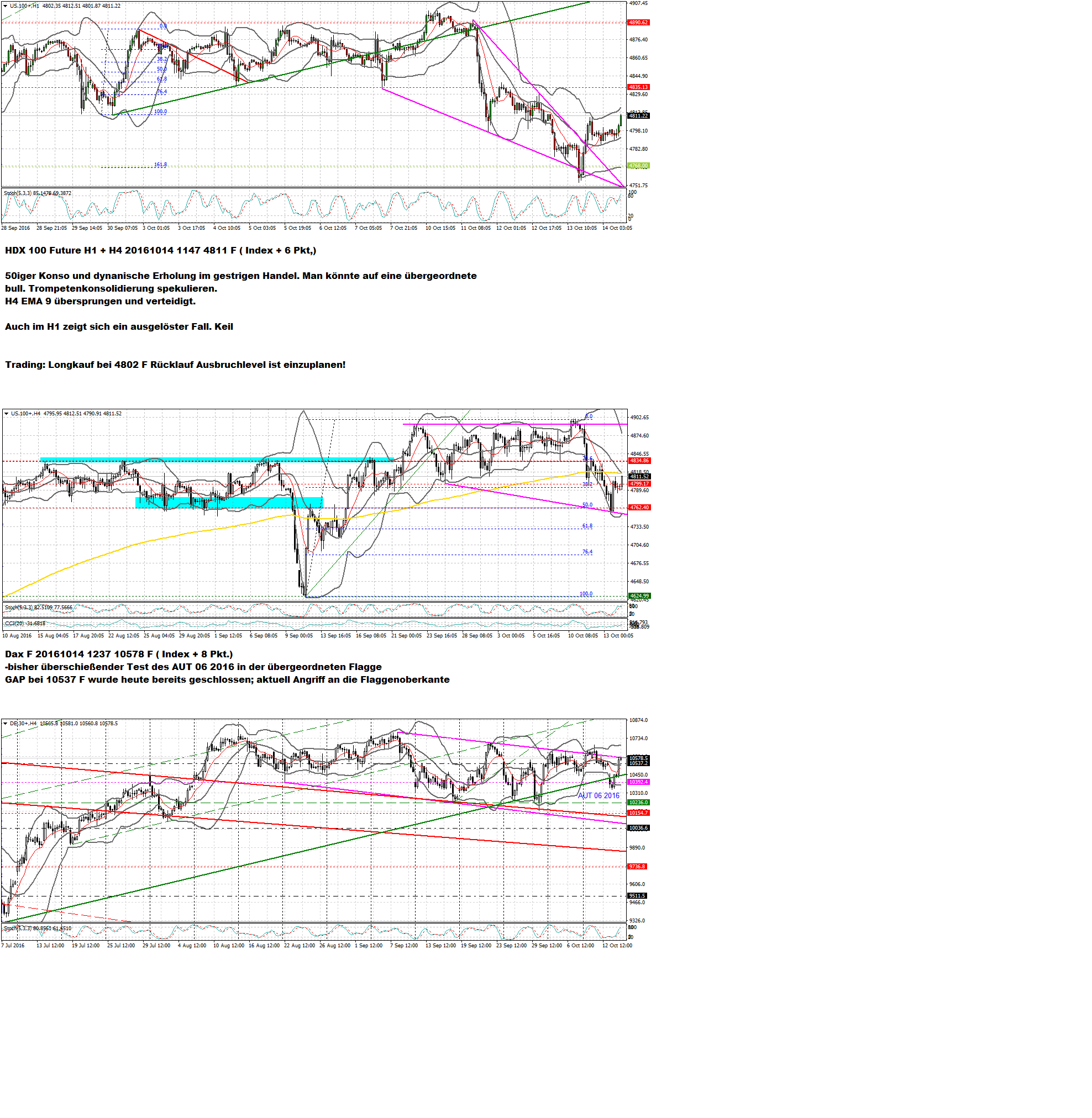 Im H 1 wird diese Spekulation durch ausgelöste fall. Keile unterstützt, sowie durch den weiterhin übergeordneten starken NDX 100, der sich vermutlich in einer bullischen Trompetenformation befindet.