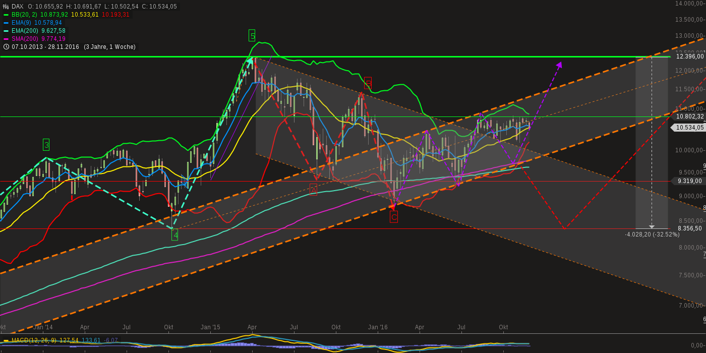 Das kann noch ein bisschen so weiter gehen (bis OBB - welches jetzt dreht und sich nach unten bewegt)...oder auch schon morgen (neuer Monat?) in die Korrektur gehen.