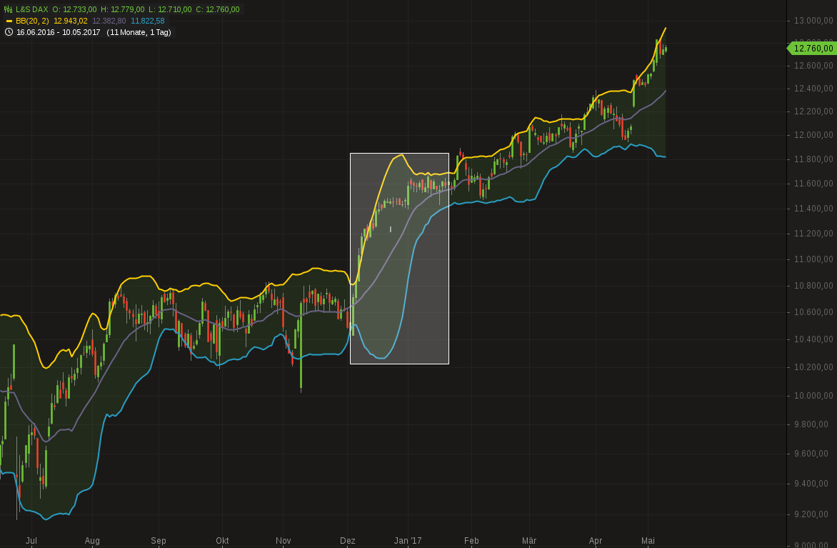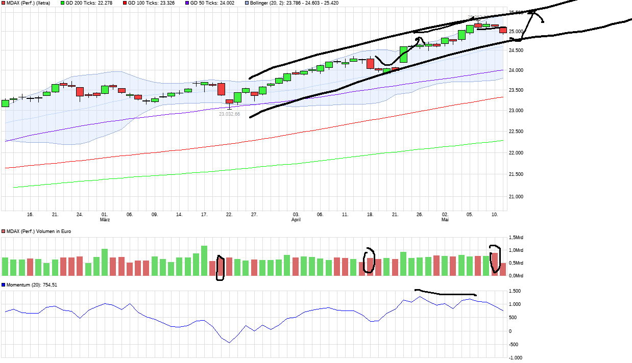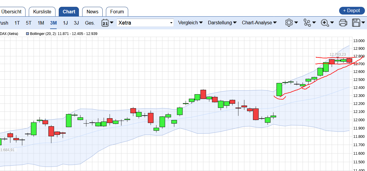 normalerweise bin ich auch immer von trendwechseln bei zu großer bollinger-amplitude ausgegangen- aber scheinbar funktionieren alte regeln und damit verbundenes halbwissen nicht mehr. keine ahnung , wohin die reise geht.....ich lass erstmal long laufen - sl nachgezogen/ läuft ja nicht schlecht ;