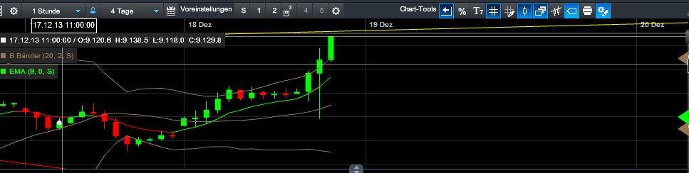Im 2. Anlauf wieder über die blaue Ok des Aufwärtstrends seit März 2011 gehüpft. OK verläuft ansteigend (am 23.12. ca. ab 9.350 Punkten. )