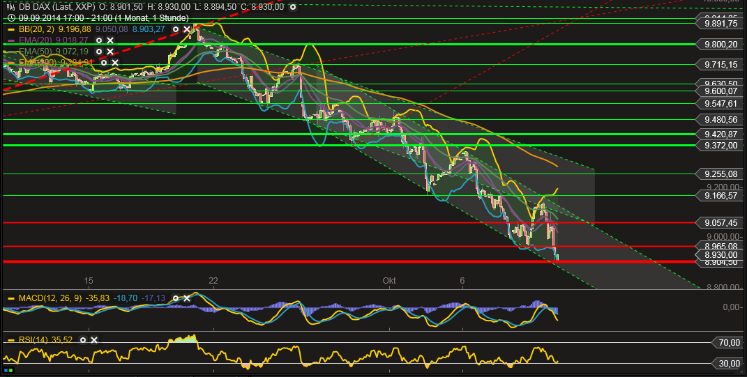 DAX unter 9000, testet das August-Tief. Das wird spannend. Schafft es der DAXi erneut nach oben zu laufen? Kaufen die Dip-Buyer morgen nach?