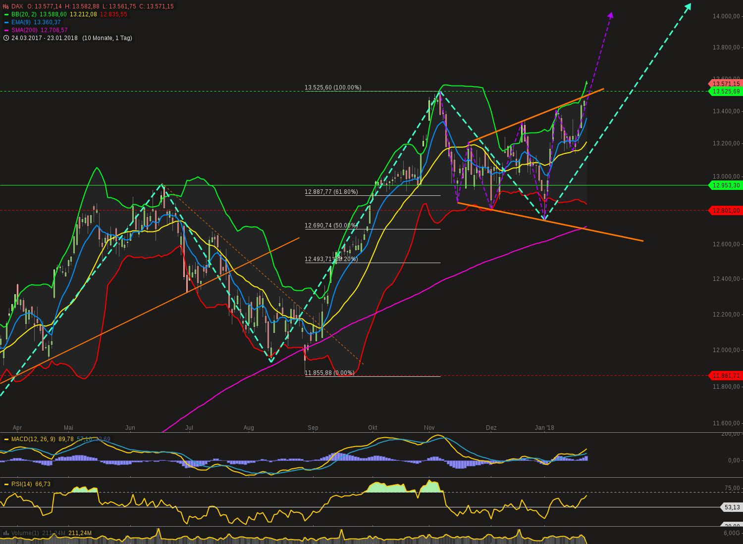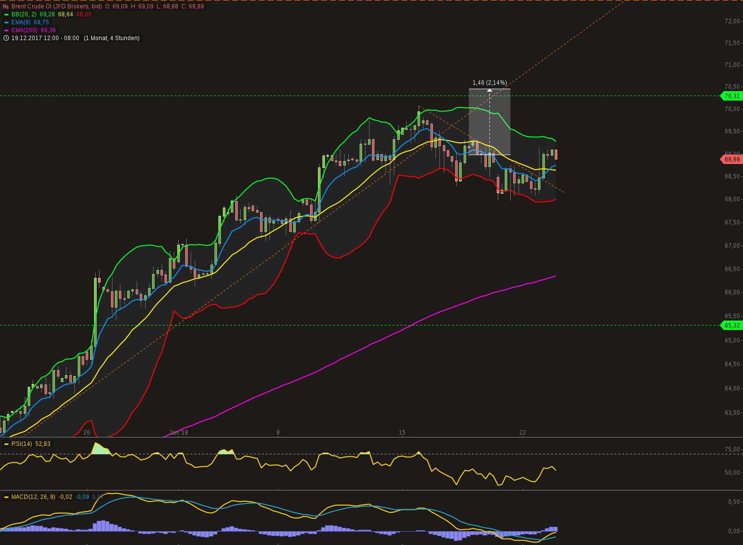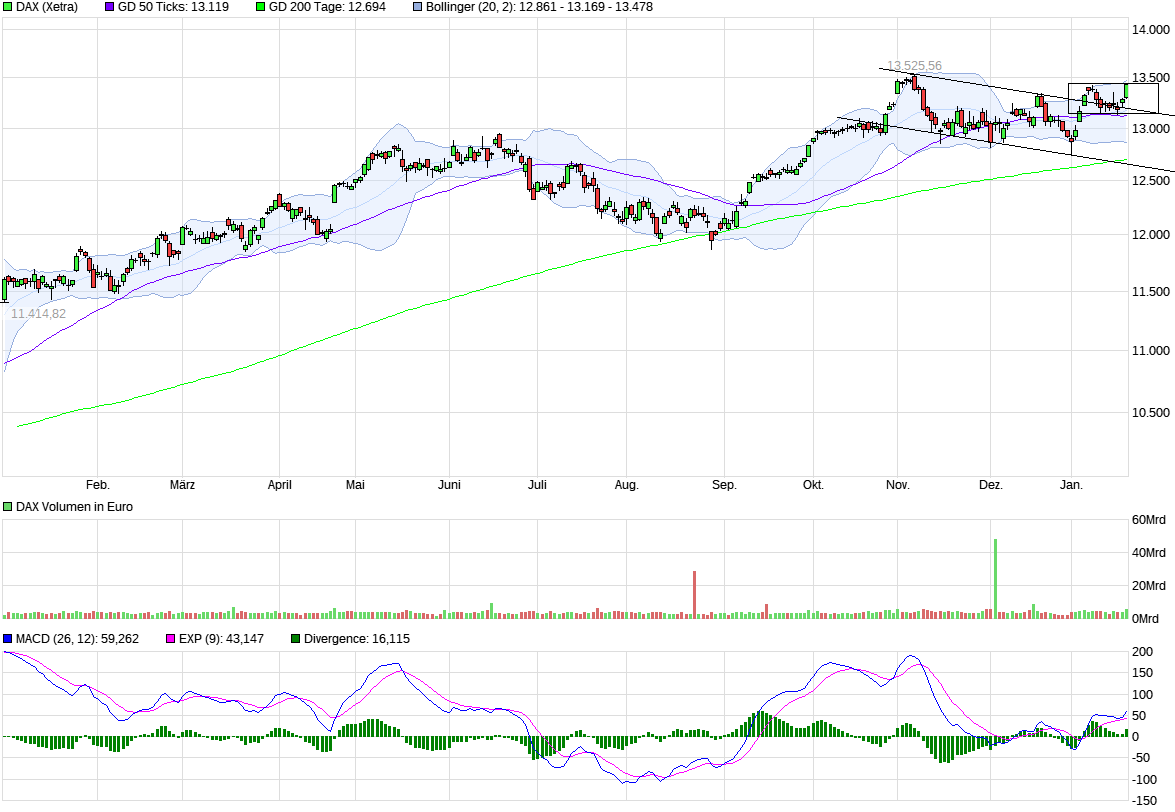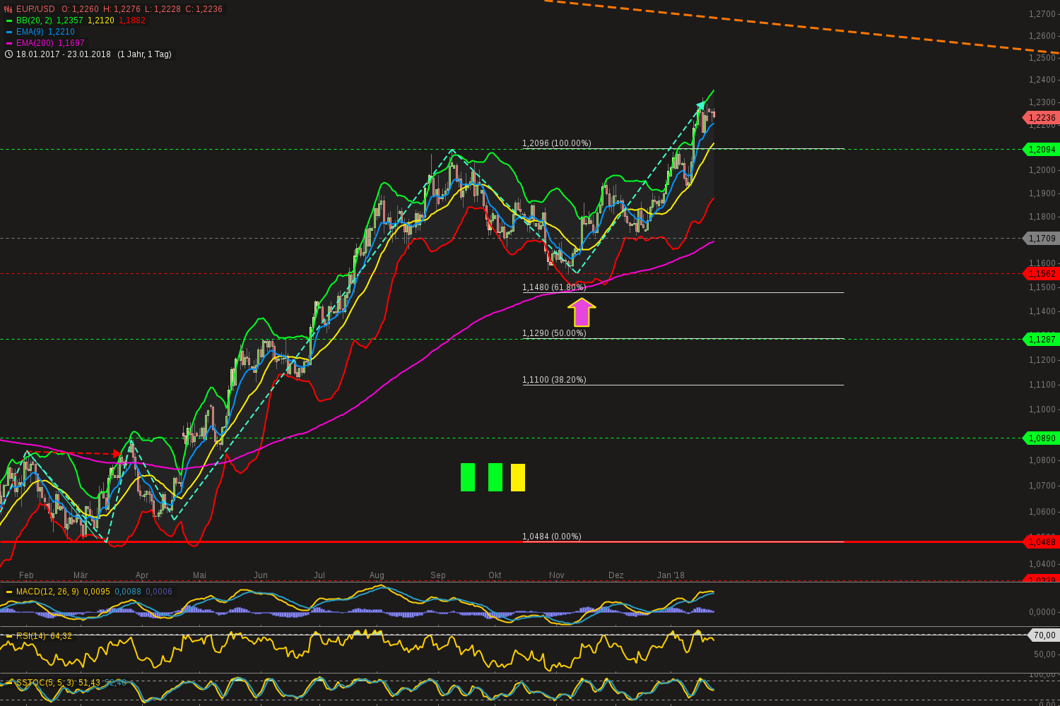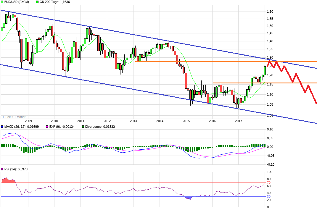 Euro hat heute während/nach der (überaus amüsanten) Pressekonferenz der EZB ordentlich zugelegt auf über 1,25, und ist damit sogar über den oberen Trendkanal ausgebrochen, als auch aus dem BB. Jetzt ist er also im Daily, Weekly und Monthly draußen. Hab daher meine Trandingposition erstmal versilbert und nur die strategische längerfristige bleibt im Depot. Eine Korrektur in den Bereich 1,22, oder wenigstens eine etwas länger andauernde Seitwärtsphase wäre jetzt durchaus gesund.