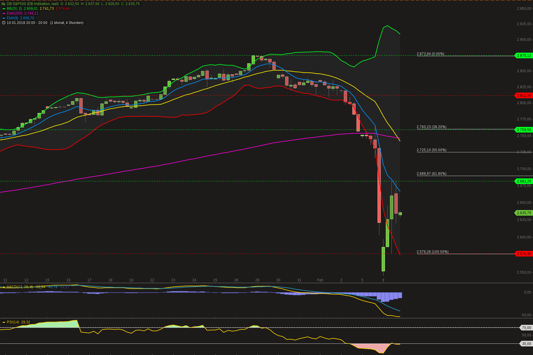 Wenn man etwas rauszoomt und in den weekly schaltet und dann die Fibo´s anlegt bei Tief aus Januar 2016 und dem Hoch aus Dezember haben wir in der Overnight Indikation sogar das 38er abgearbeitet. Demnach könnte es das bereits gewesen sein. Oder sie wird nochmal angelaufen in den nächsten Tagen, wenn man dann auch "handlungsfähig" ist, im wahrsten Sinne des Wortes :D