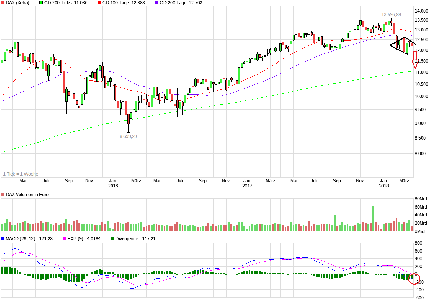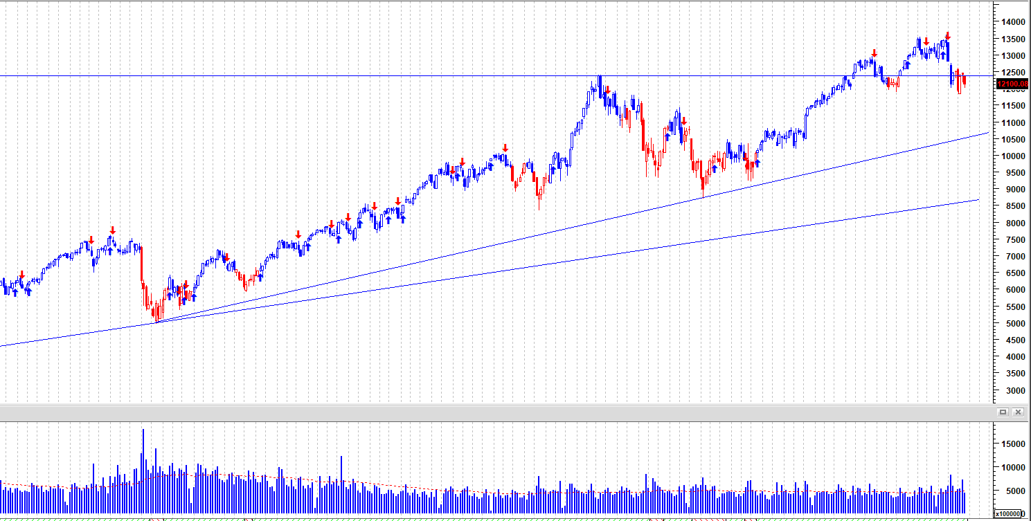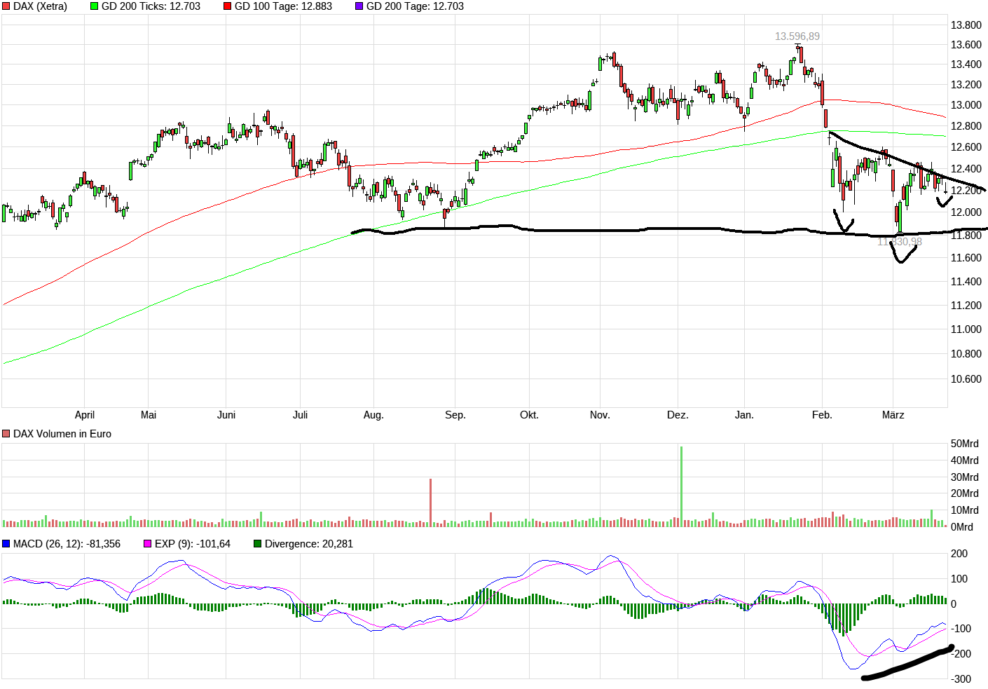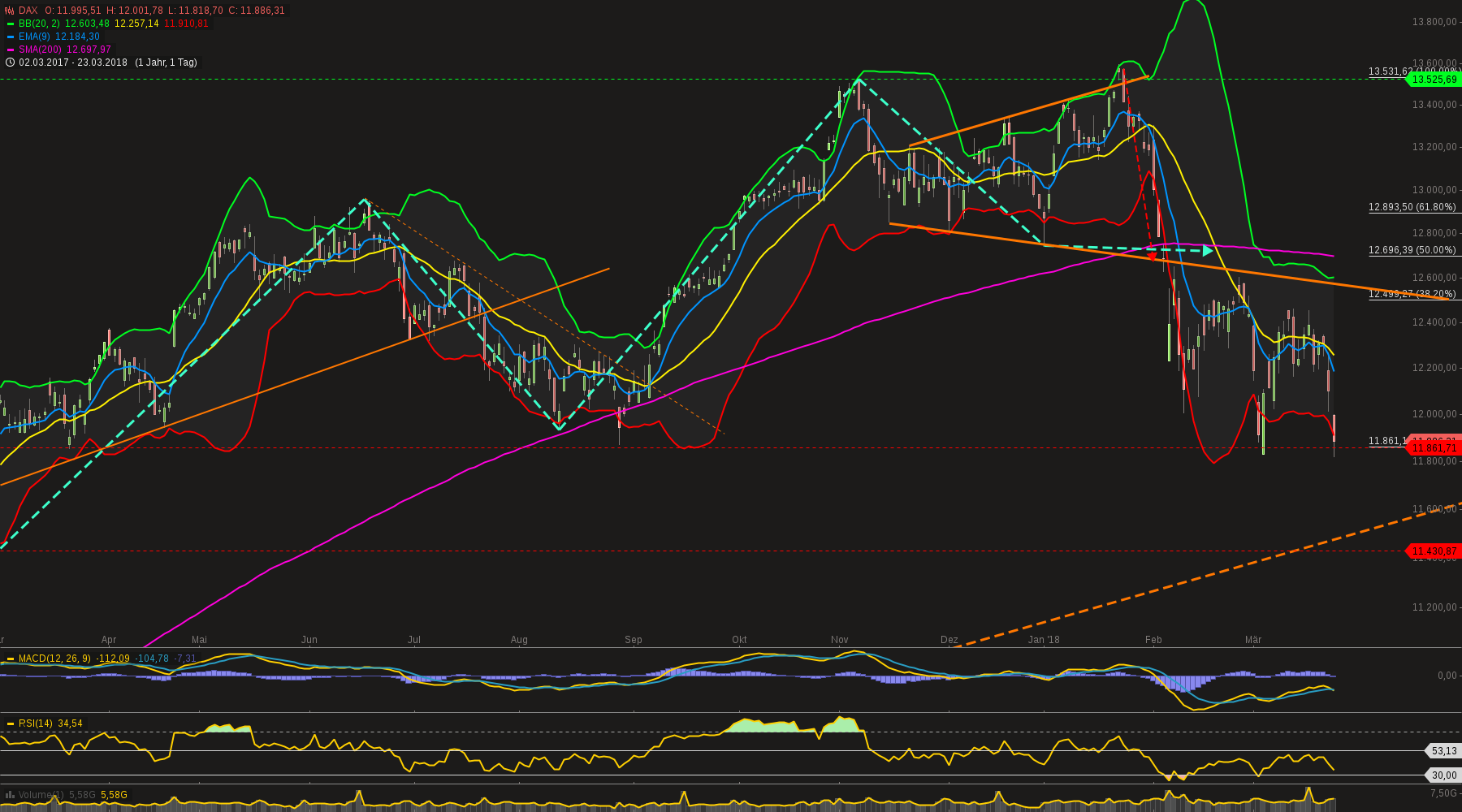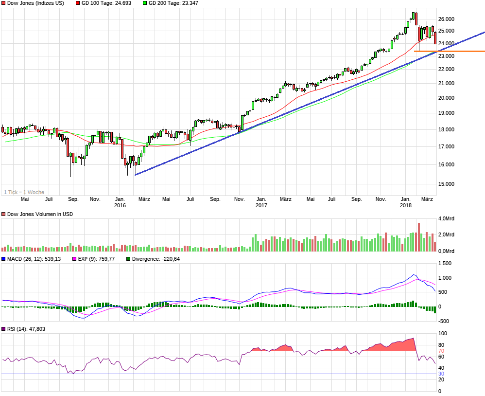 11,5k im Dax und 23,3k im Dow sind daher für mich die Marken im großen, übergeordneten Bild, die halten müssen. Wenn nicht haben wir starke Anzeichen für einen kommenden Bärenmarkt.