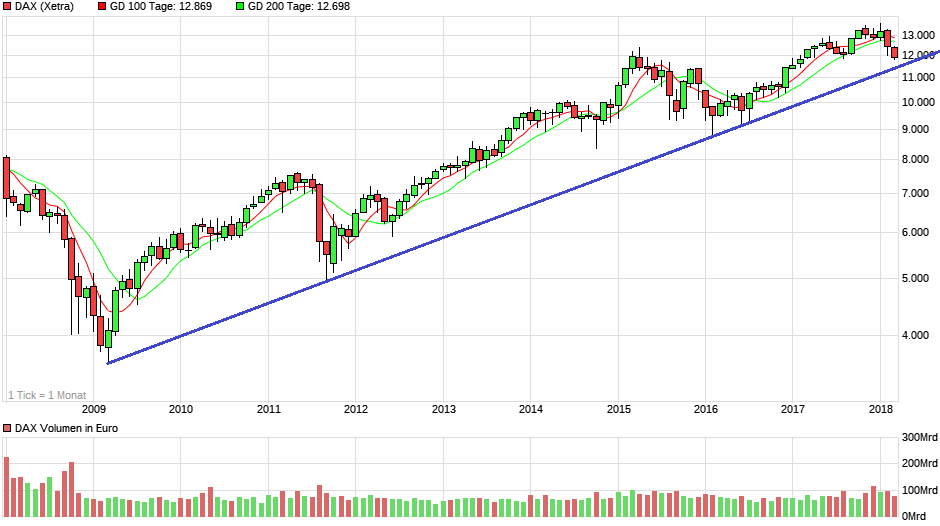 Sollte zudem beim Dow die 23350 halten, glaub ich kaum, dass wir im Dax auf 11k oder 10,8k gehen. Dann würde man wohl bei rund 11500 drehen, was dem langfristigen Uptrend (und Zwischenhoch Ende 2015) entspräche.
