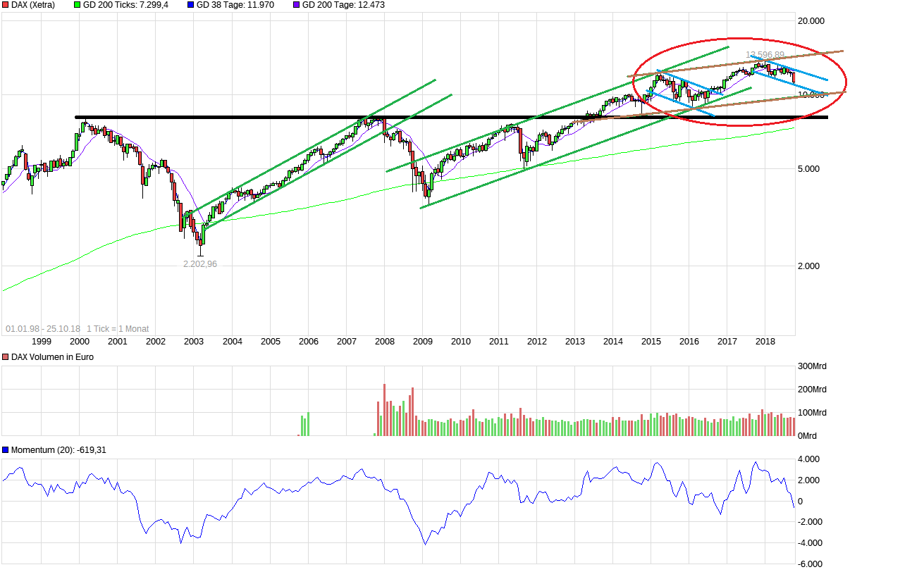 Sollten wir uns nach dem grossen Trendbruch 2013 (SCHWARZ - ja, langfristig hatten wir einen trendlosen Trend bis 2013) in einem neuen Uptrend (BRAUN) befinden (nehmen wir an der 2009+ Trend (GRUEN/ ist Geschichte), sind wir jetzt in einer B-Welle (BLAU) der ABC Bewegung.