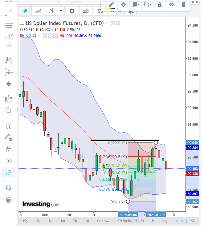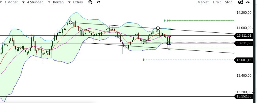 Z.B. im SPX bildet sich eine broadening descending wedge, typischerweise eher ein bullisches muster. Ausbruchsrichtung gibt jedoch die richtung vor!