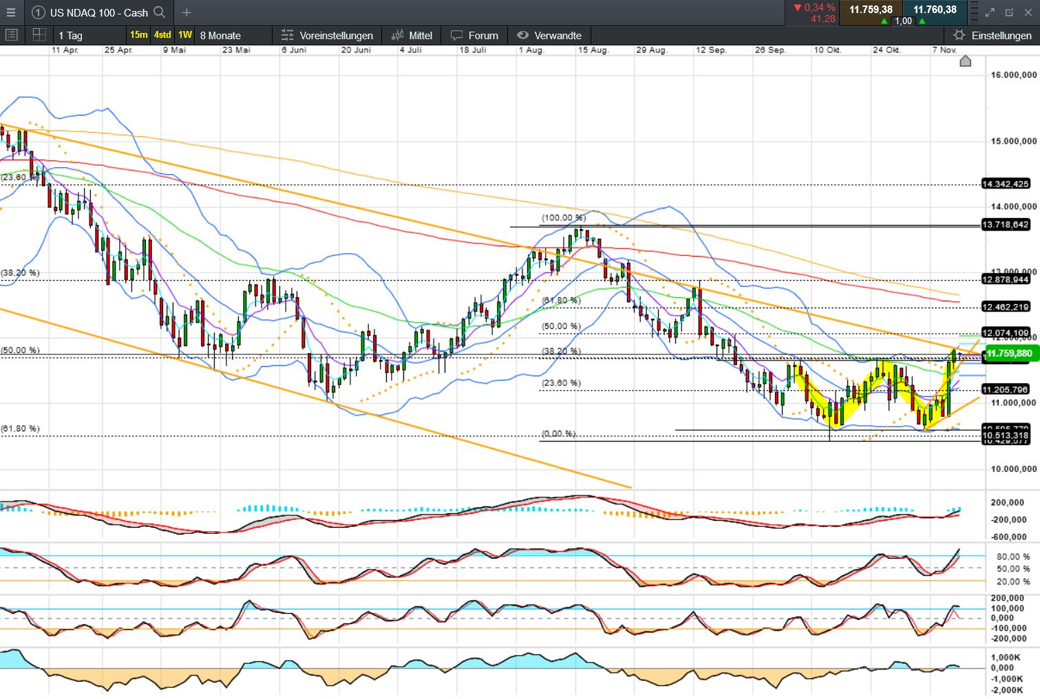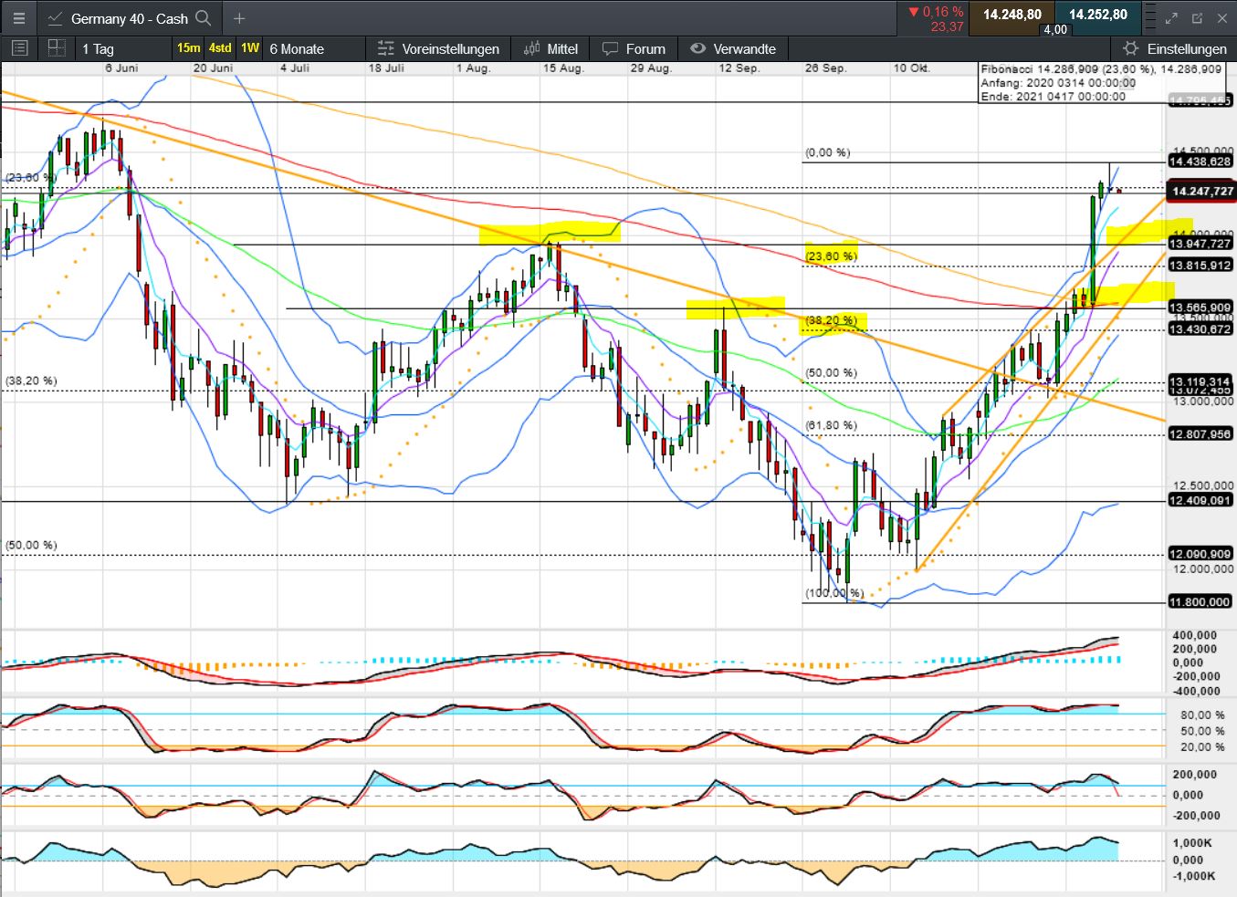 Nichtsdestotrotz sehen die Tageskerzen dort nun allerdings überall eher nach einer Konsolidierung der Rally letzter Woche aus., als nach einem dynamischen weiteren Durchmarsch.