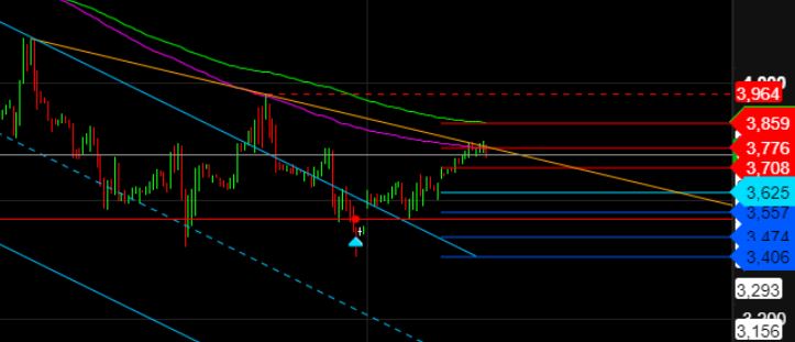 widerspricht dies in keinster weise einem kurzfristshort - denn meist folgt innerhlab der wedge bei rebreak ein schneller harter test der trendlinie - die läge bei round 750 irgendwo nur grob geschätzt