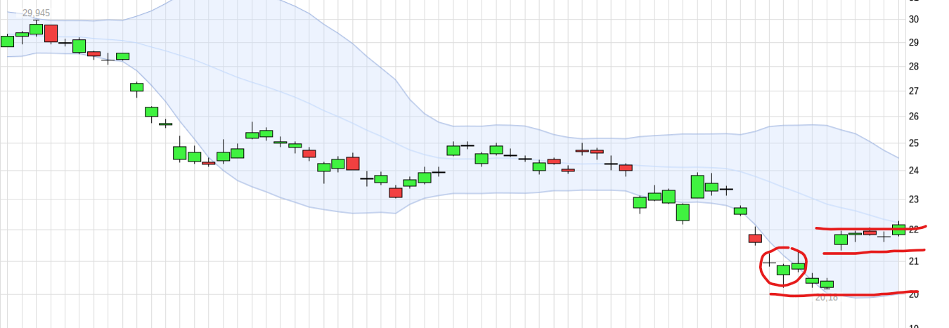 wir kamen ja ursprünglich aus dem 5er da war zuerst die erweiterte übertreibung kein thema - mein ansatz war damals wie kann man ausreißer einschätzen und ggf einfangen - hintergrund war das bb das eine art durchschnittswert darstellt und abweichungen also ausbrüche dazu neigen wie bei allen mittelwerten wieder zum durchschnitt zu laufen - der ist das mittlere bollinger band .