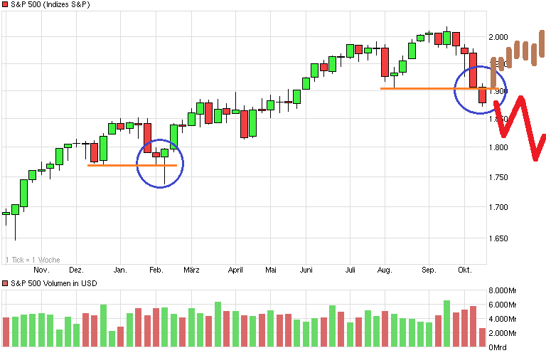 Das wäre für mich das einzige Szenario, dass die Märkte noch für die nächsten Wochen retten würde. Wenn der S&P am Freitag über 1905 schließt, könnte das aktuell eine große Bärenfalle sein. Wenn er die Marke nicht zurückerobert, gehts wohl weiter runter.