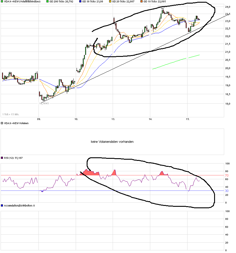 Eigentlich hat der S&P aus meiner Sicht klare Short-Signale geliefert. Das sah allerdings Anfang Februar (das einzige Mal in den letzten drei Jahren während des Bullenmarktes) schon mal ähnlich aus, mit dem tieferen Tief. Der Index hat sich dann zum Wochenschluß noch über das alte Verlaufstief mit einem Hammer gerettet.
