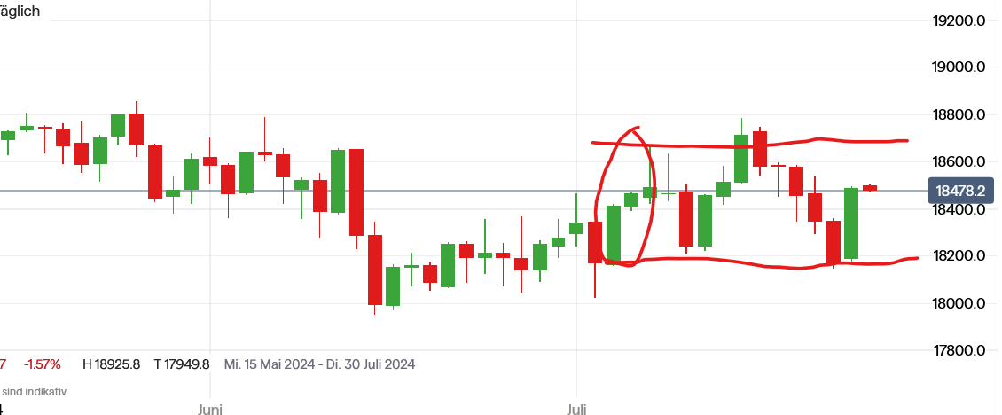 Der Gedanke, dass der DAX steigt oder sinkt beruht ja auf Daten-/Situationsauswertung (Chart oder Indikatoren etc.). Ich kann bestimmt alle Indikatoren einzeln bewerten, manche würden dafür sprechen, dass der Kurs weiter srteigt, manche dagegen aber das ist letztlich nicht viel wert, wenn man keine Bewertung der Umstände für sich nutzen kann. Daran scheitert es momentan, ehrlich gesagt.