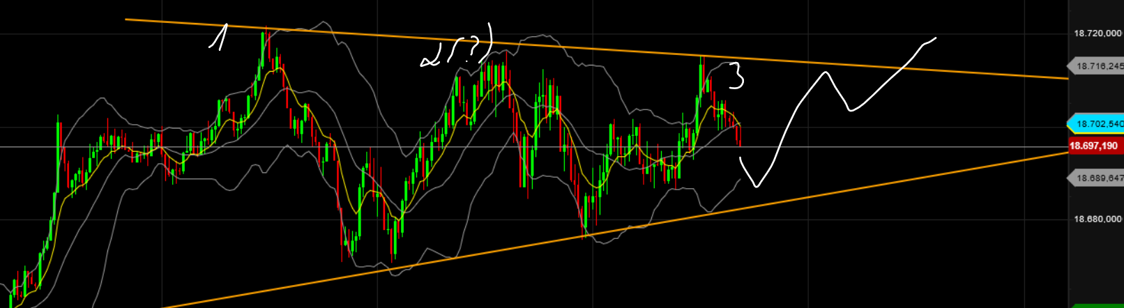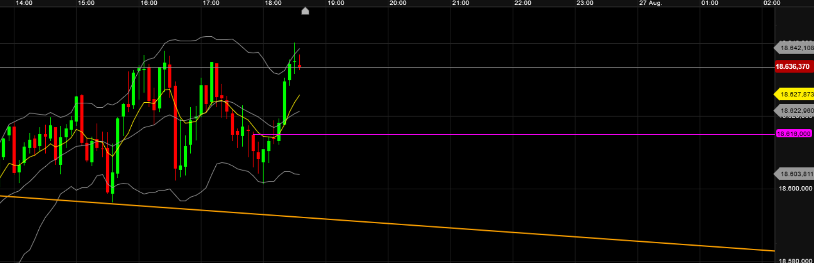 Denn es könnte in sich ja die Korrektur vom letzten größerem Up move sein welcher über 18632 nach oben getriggert wird.