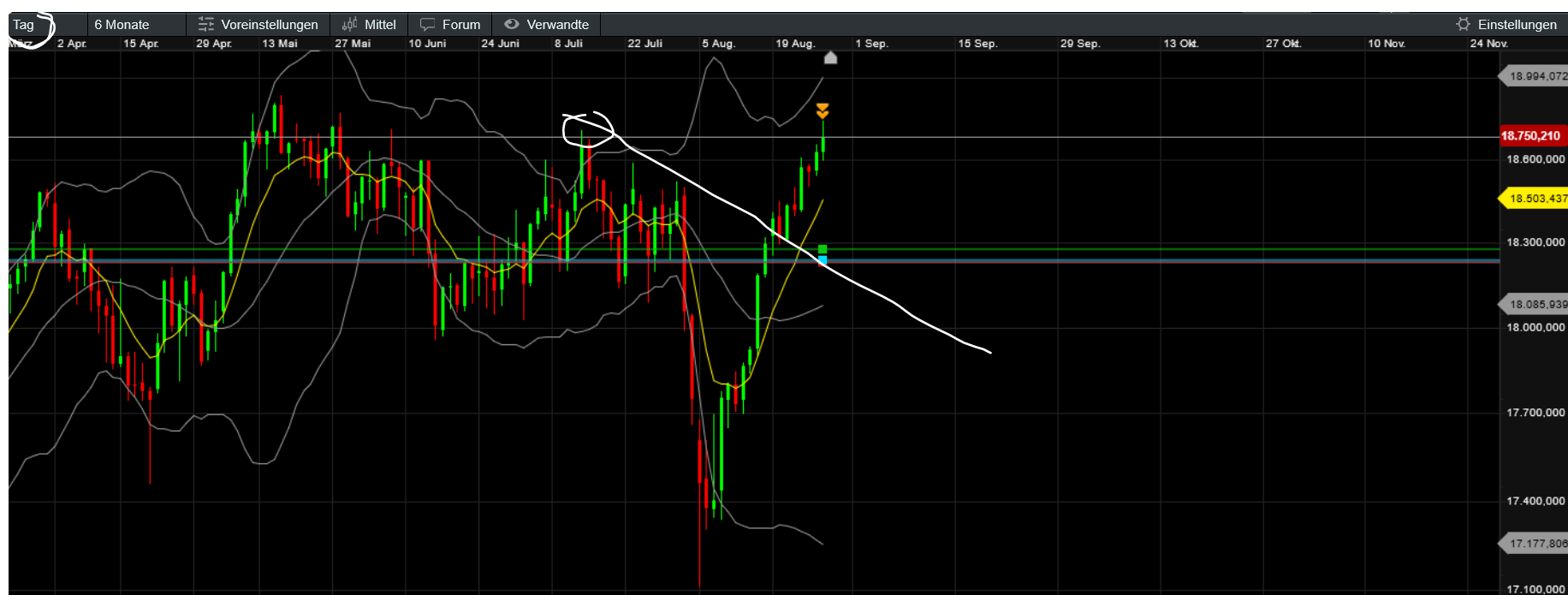 brechen sie hier durch ist das ziel über ath bei knapp 20000 - scheitern sie vor dem ath liegen ziele im bereich 18500/18400 und 18100 in reichweite