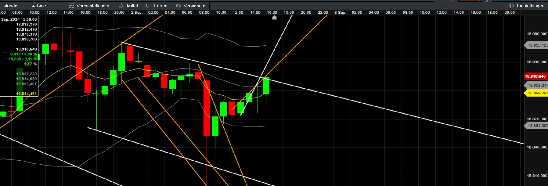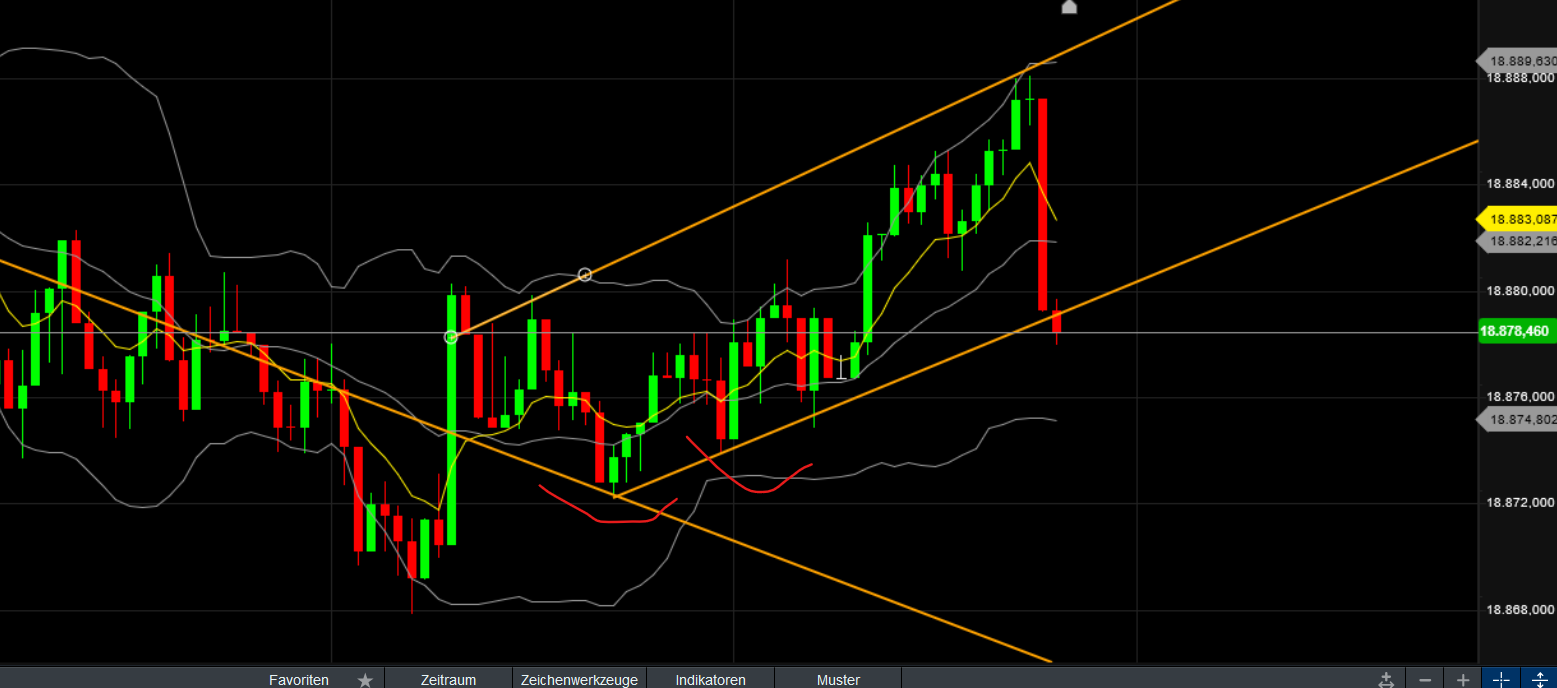 heute nach dem kleinen Korrektiv, den Hammer im 5 er candlestick verpasst, bin dennoch mit 34 Punkten im Plus eben rausgegangen. Das Einzige, was ich nicht mache, ist den Hebel klein machen. 10 er ist für mich schon mäßig zu ertragen, da die Beträge so klein sind. Bei traders Place kostet die Order auch 1 EUR aber der trailing kostet etwas unter 5 EUR. Den kann ich nur direkt bei der Börse Stuttgart platzieren.