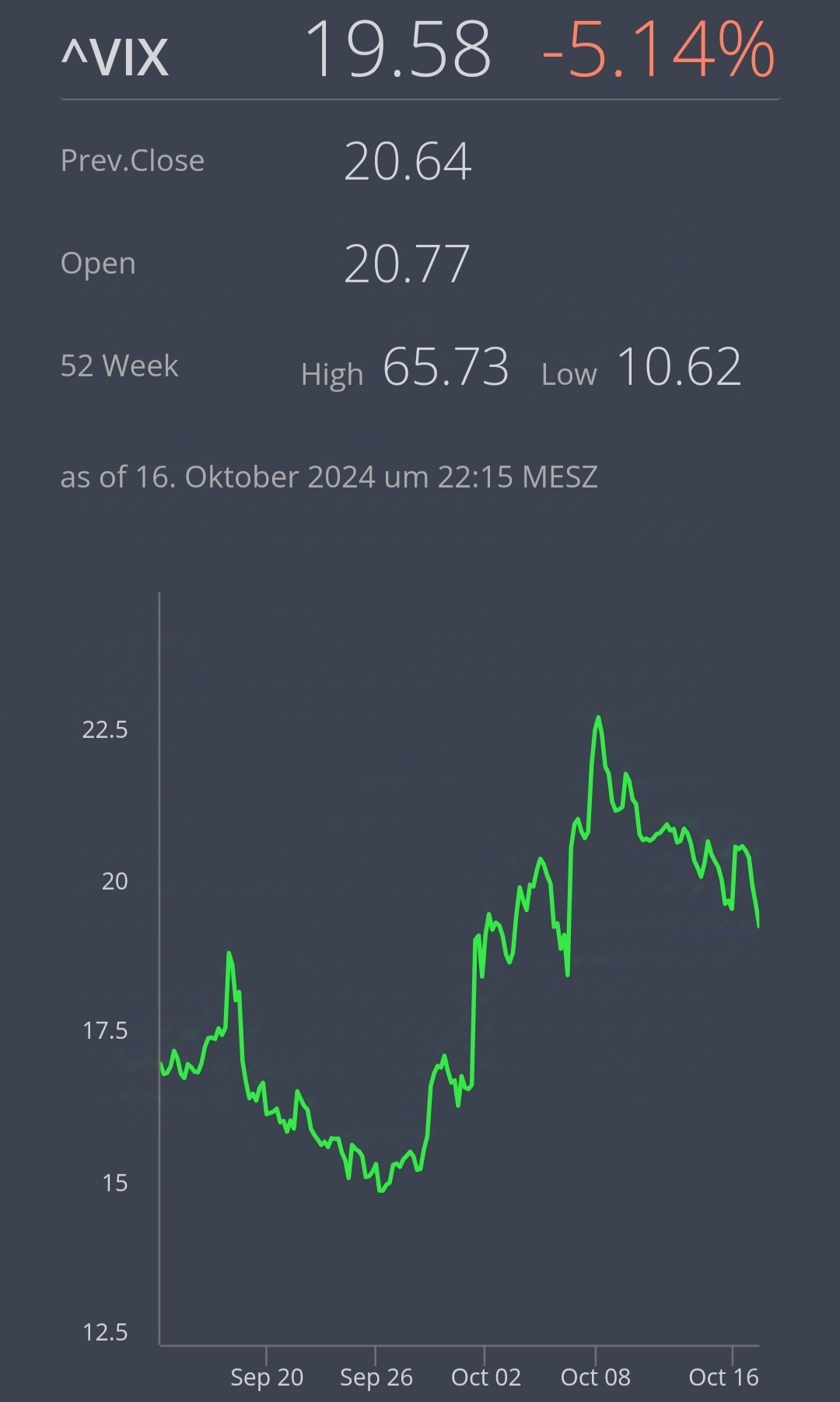 Dazu gilt aber noch zu bedenken, dass der VIX am Freitag nochmal 5% kollabiert ist, das bringt die implizierte Volatilität meiner Call-OS nochmal n Stück weit mit runter und infolge dessen würde ein Downgap am Montag doppelt bestraft werden.