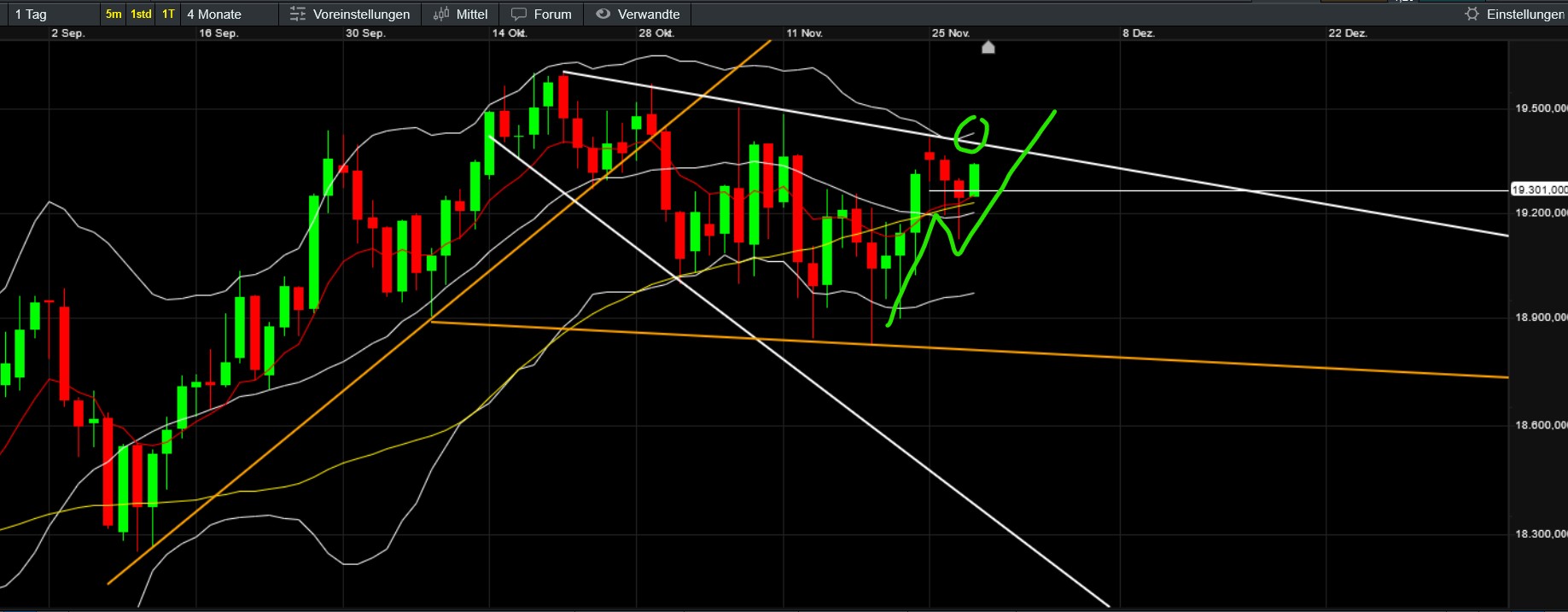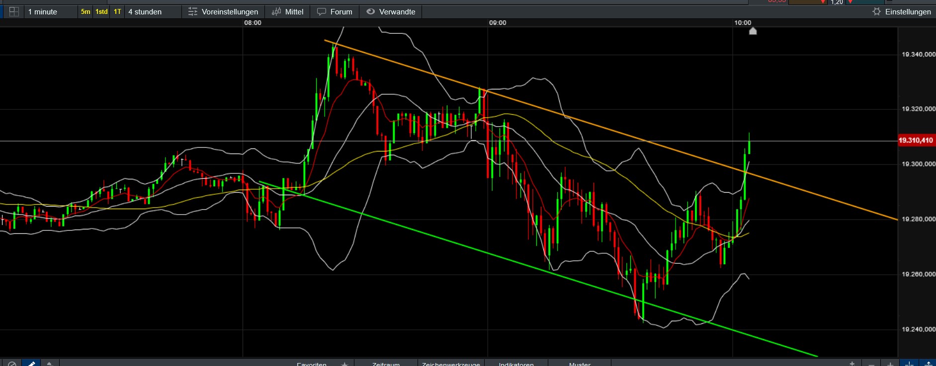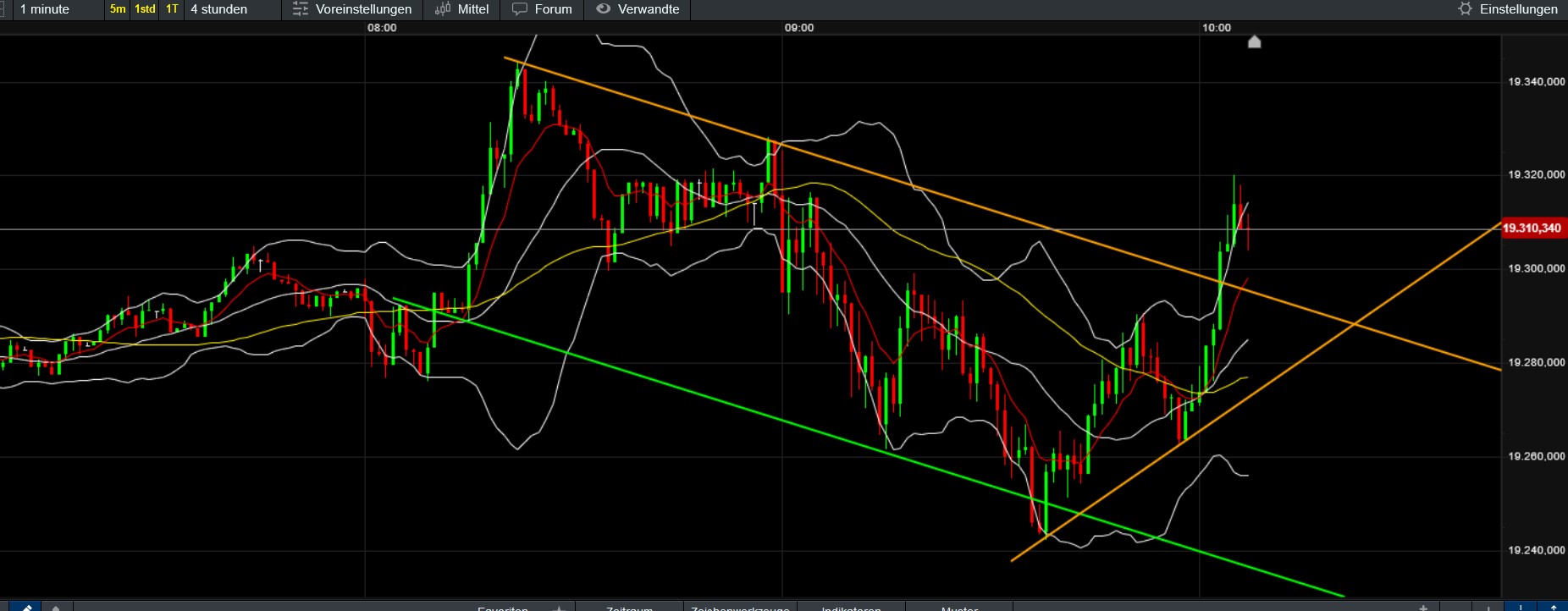 und jetzt kommt ggf das gewöhnungsbedürftige - kurs schliesst höher und irgendwann konsolidieren sie die bewegung - viele geben dann sofort auf und verschenken ggf punkte - denn folgen weitere höhere hochs sagt die theorie der umekrhstäbe - sl ist einfach nachzuziehen - so kriegt man zwar selten das maximum ABER ggf ist es emotionsloser als dann im 5er zu kontrollieren warum ein kurs fällt und wohin er unterwegs sein könnte