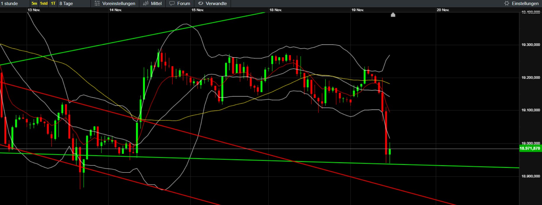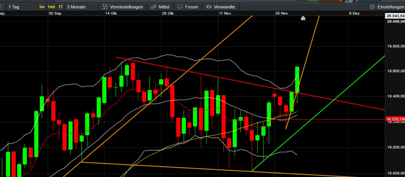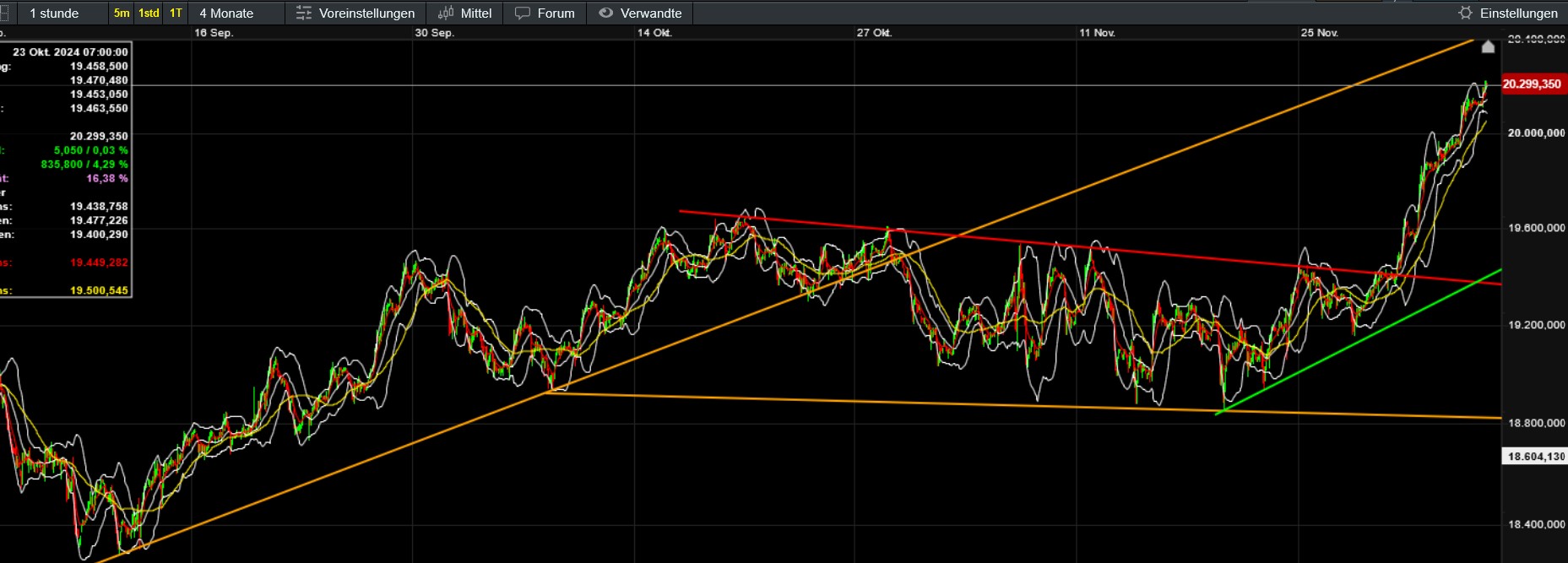 und jetzt kommt ggf das gewöhnungsbedürftige - kurs schliesst höher und irgendwann konsolidieren sie die bewegung - viele geben dann sofort auf und verschenken ggf punkte - denn folgen weitere höhere hochs sagt die theorie der umekrhstäbe - sl ist einfach nachzuziehen - so kriegt man zwar selten das maximum ABER ggf ist es emotionsloser als dann im 5er zu kontrollieren warum ein kurs fällt und wohin er unterwegs sein könnte